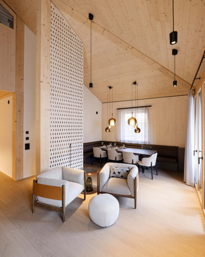 Alpiner Baustil, auffällige Gestaltungselemente und vollständig aus Holz – das Apartmenthaus AVA