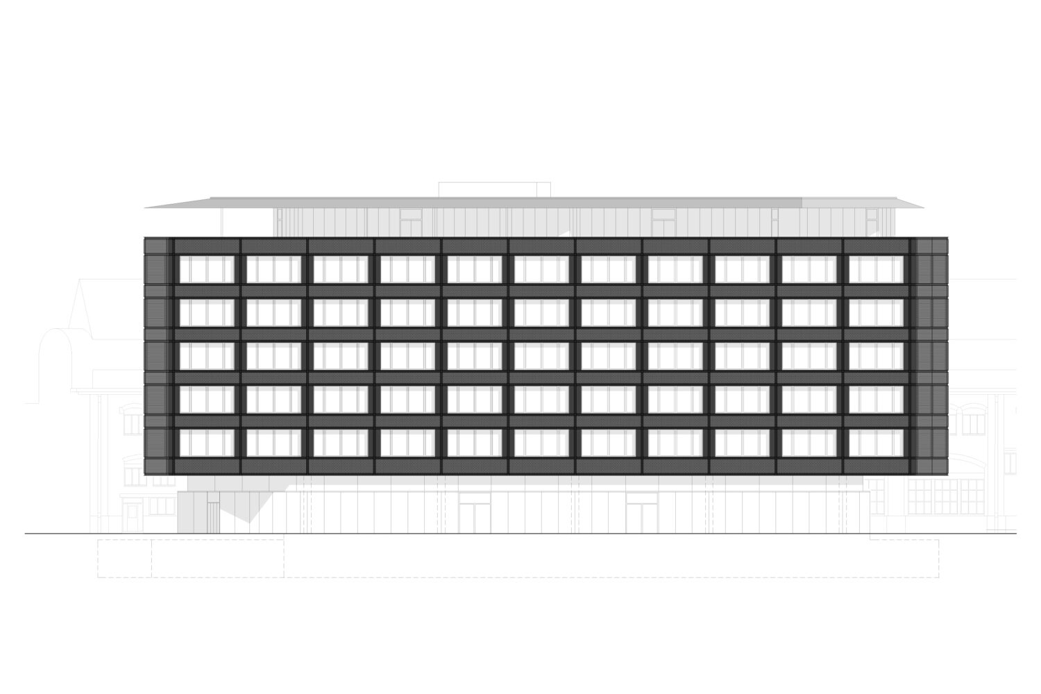 Ab dem ersten Geschoss binden dunkle Stahlrahmen und Klinkerfüllungen die Bürogeschosse optisch zusammen – eine Reminiszenz an die architektonische Geschichte des Ortes. Hier hat OOS die Anforderungen an unterschiedliche Arbeitsbereiche mit einem langgezogenen Kern gelöst: Dieser filtert die verschiedenen Zonen in Bereiche für individuelle Arbeitsplätze und solche für Begegnungen und gemeinschaftliche Kommunikation. Krönender Abschluss ist das Dachgeschoss: In den Meeting-Räumen bietet sich den Nutzern ein Blick über die Dächer von Zürich.