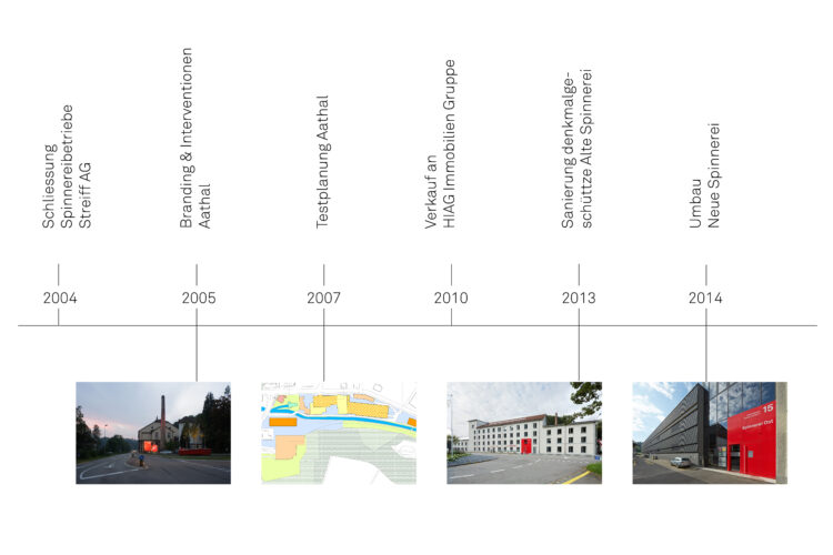 Durch die Schliessung des Spinnereibetriebs der Streiff AG im Jahr 2004 verlor das Aathal seinen prägenden industriellen Akteur. Im Zuge der Transformation hin zur Hiag Immobilien AG sollte das Areal neu positioniert und zu einem attraktiven Standort entwickelt werden. Plötzlich leerstehende, grosssflächige Areale sollten sichtbar gemacht, bestehende Potenziale herausgearbeitet und für zukünftige Nutzungen reaktiviert werden.
