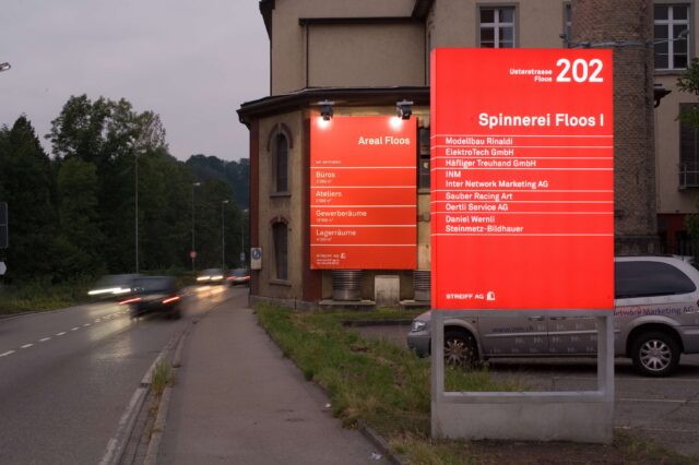 Mit gezielten Interventionen unter dem Leitthema «Aufwertung und Bewerbung» wurde die Aufmerksamkeit auf das Aathal gelenkt. Das Corporate Design der Streiff AG wurde in ein einprägsames Signaletikkonzept übersetzt und in einer cineastischen Installation im Tal installiert. Mit den leuchtend roten Steelen und Plakaten wurde der öffentliche Raum über 2 km längs der Zürichstrasse bespielt. Dies führte zu einer klaren Adressbildung und stärkte die Wahrnehmung des Standorts. Gleichzeitig konnten Vermietungspotenziale aufgezeigt und zukünftige Kommunikationsplattformen präsentiert werden.