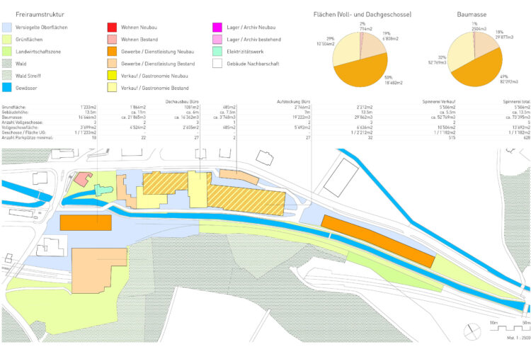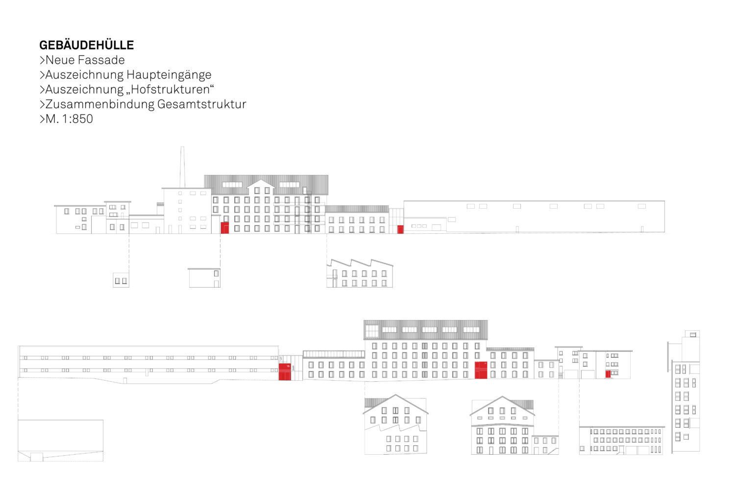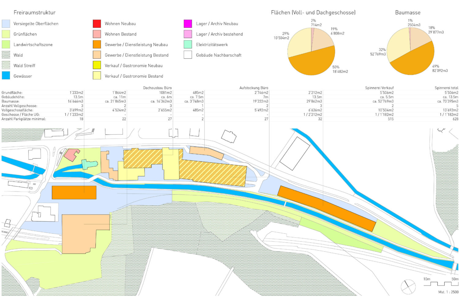 Dadurch wurde die Nutzbarkeit der Flächen im teilweise denkmalgeschützten Gebäudekomplex, bestehend aus Zentralbüro, Baumwolllager, Alte Spinnerei, Shedhalle und Neue Spinnerei, verbessert. Im Zuge dessen wurde auch der Aussenraum umfassend aufgewertet. In einem weiteren Schritt erhielt die Neue Spinnerei eine neue Gebäudehülle, zusätzliche Zugänge, optimierte Anlieferzonen sowie eine allgemeine Erschliessungszone, die zwischen Shedhalle und Neue Spinnerei liegt.