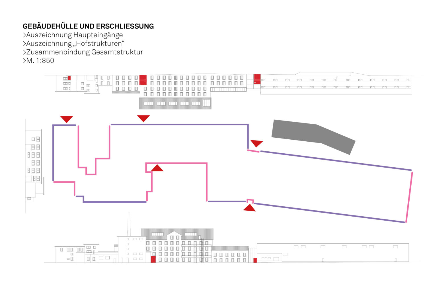 Durch Zwischennutzung wurde Zeit geschaffen, um das zentrale Areal zu entwickeln. Anschliessend wurde durch gezielte Eingriffe die bestehende Bausubstanz innen wie aussen für eine optimale Flächennutzung und Klärung der architektonischen Bausteine bereinigt und aufgewertet.