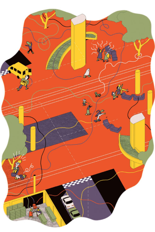 Der Strassenraum zwischen dem Bahnhof Hardbrücke und dem Escher-Wyss-Platz ist heute geprägt von Verkehrslärm, Unübersichtlichkeit und mangelnder Aufenthaltsqualität. Mit der Initiative „Die Säulenhalle” zeiget OOS zusammen mit der gleichnamigen Arbeitsgruppe, wie sich der Raum unter der Hardbrücke in einen 700 Meter langen, überdachten öffentlichen Platz (dem längsten Dach der Schweiz!) für Zürich West transformieren lässt.