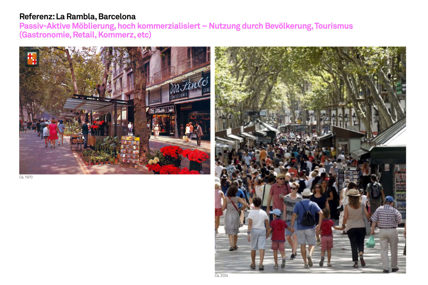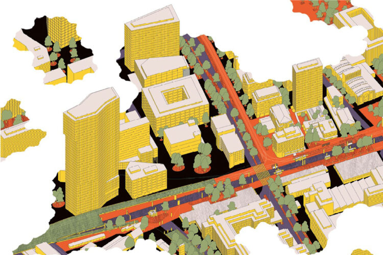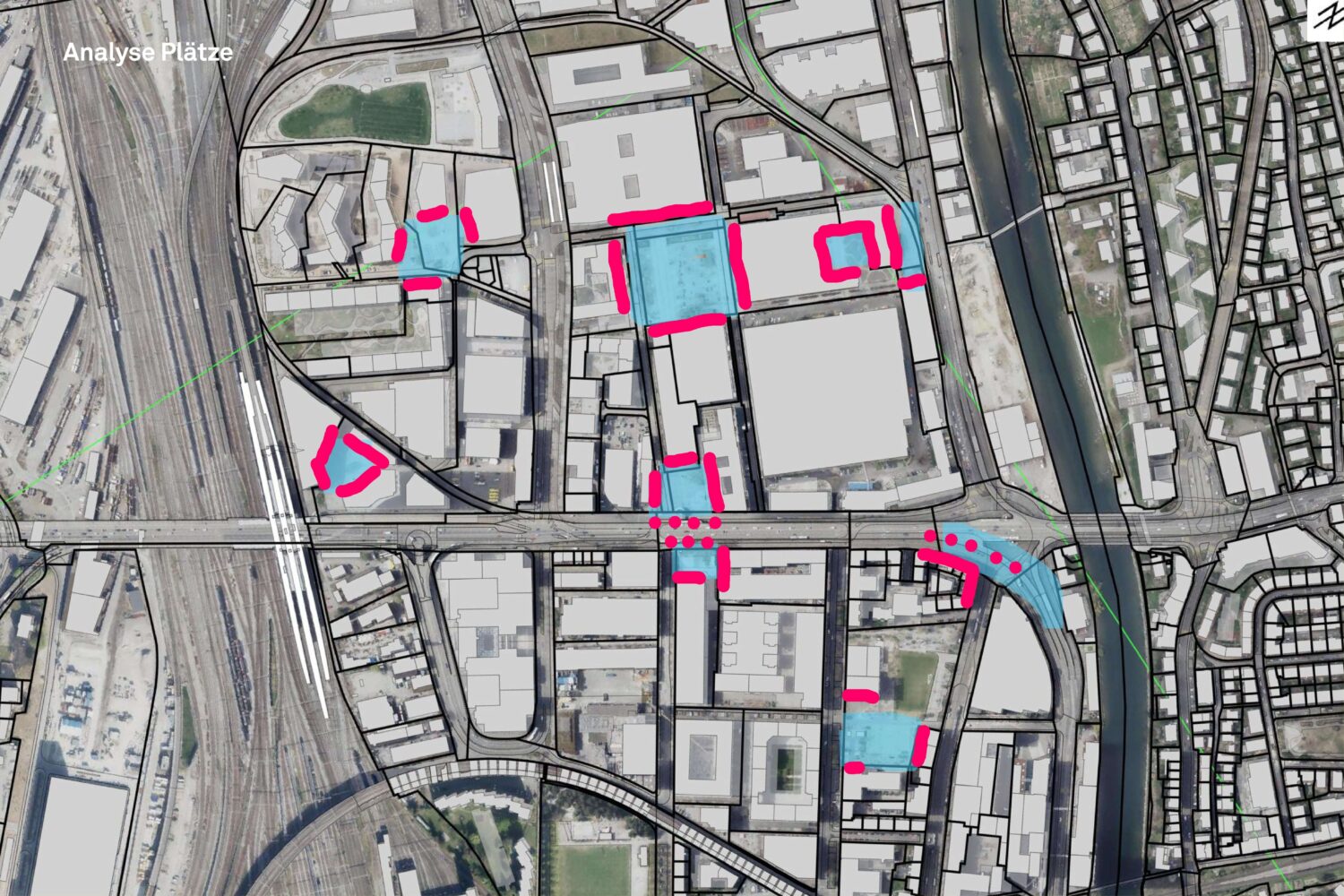 Eine Abfolge von Plätzen: Entlang der Achse entsteht eine Abfolge unterschiedlicher Plätze mit spezifischen Funktionen und atmosphärischen Qualitäten.