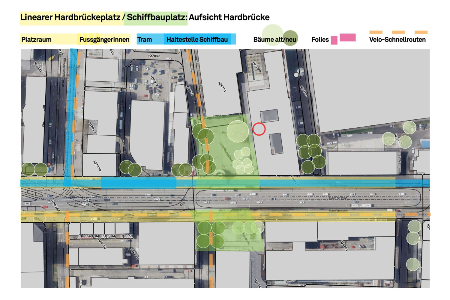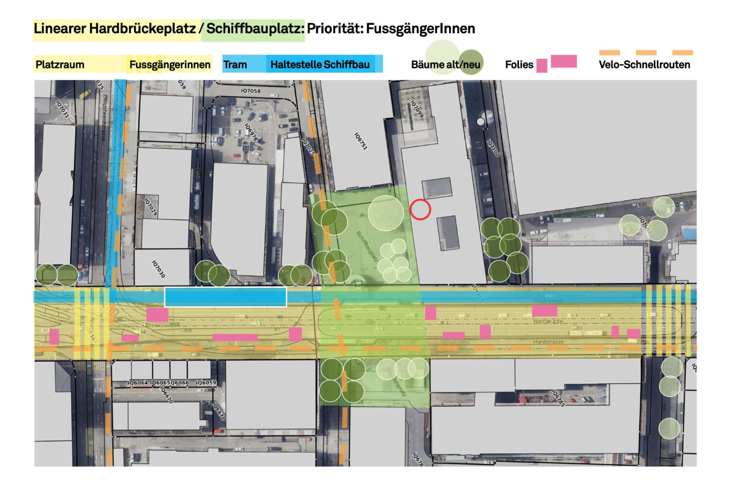 Endlich ein Bahnhofplatz: Der Bahnhof Hardbrücke erhält einen verkehrsfreien, gedeckten Platz mit Aufenthalts- und Nutzungsmöglichkeiten für Quartier und Passanten.