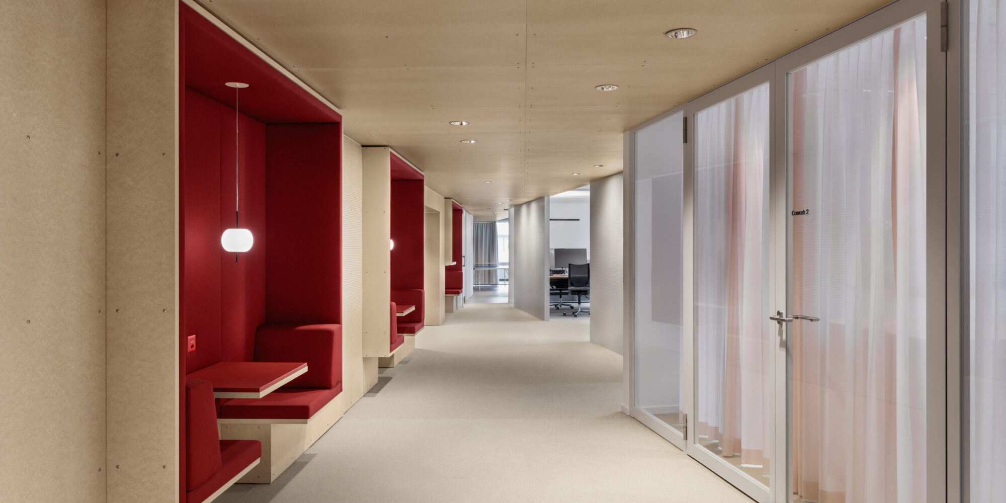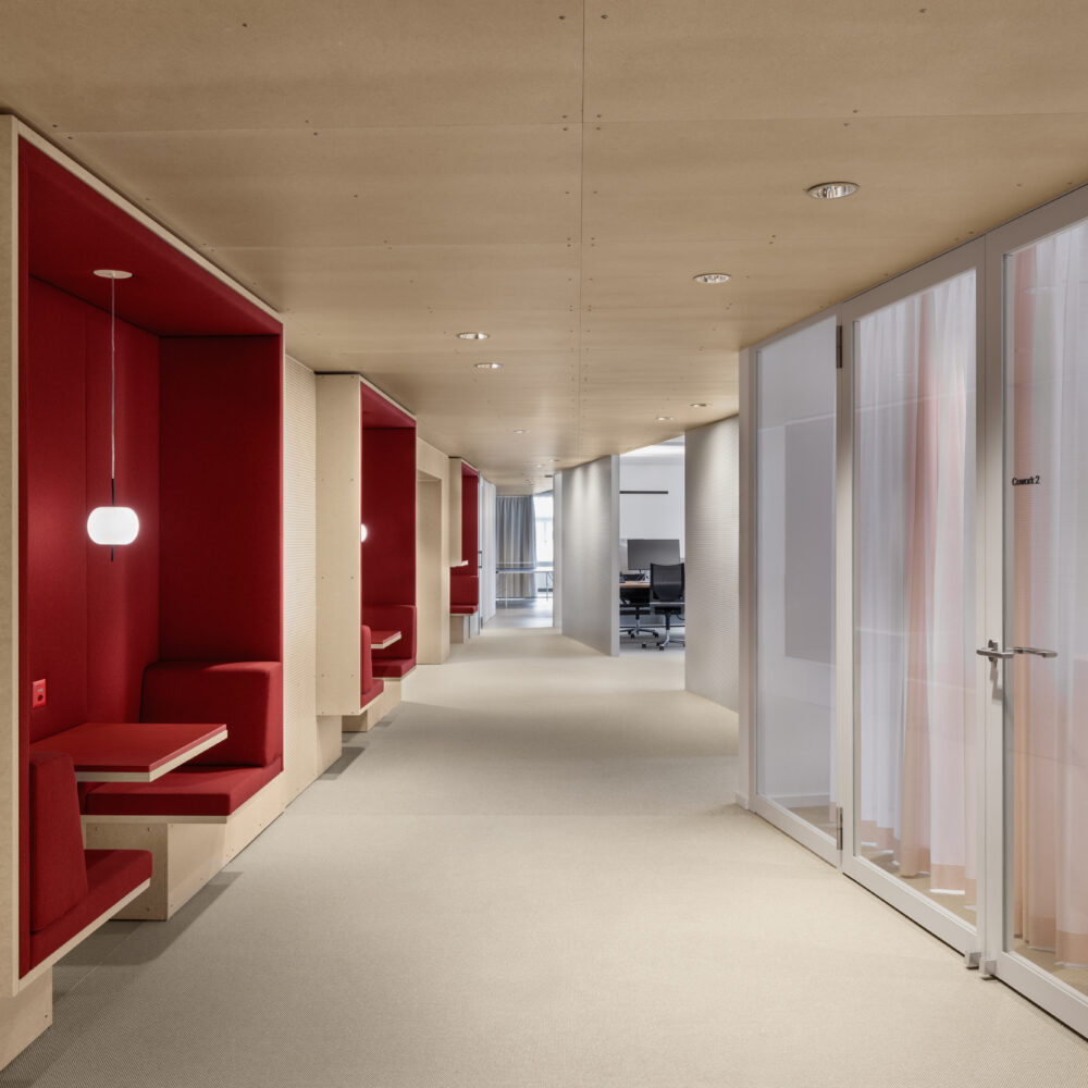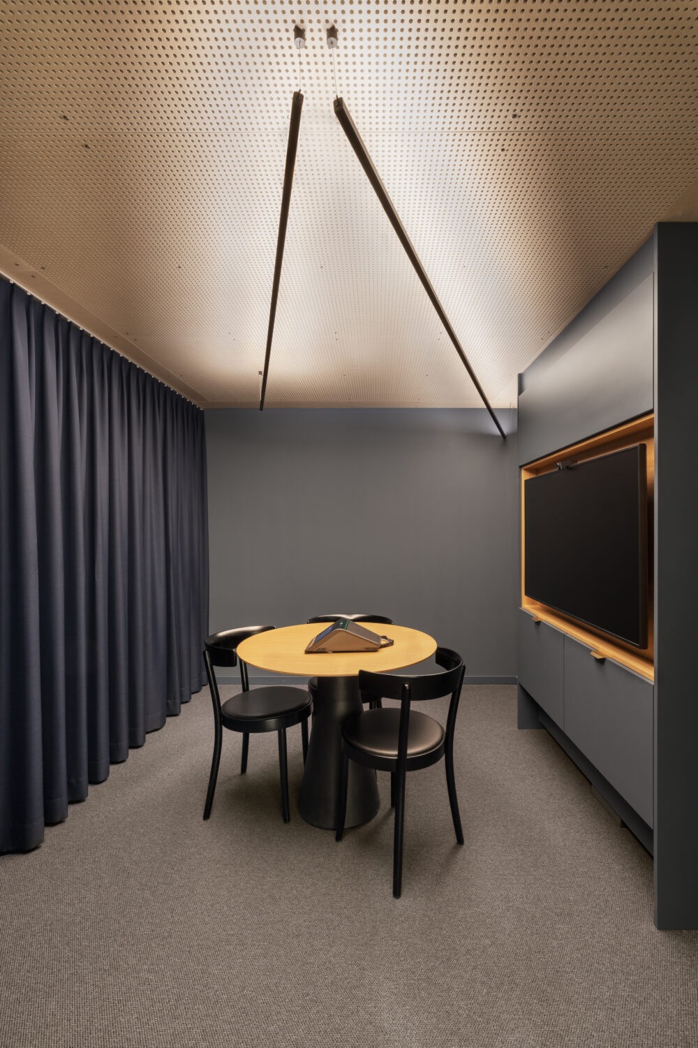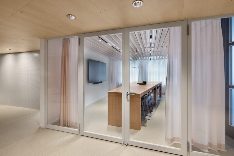 Weitere wichtige Aspekte waren Ergonomie, Schall und Raumklima, um das Wohlbefinden der Mitarbeitenden zu fördern, sowie der Ausbau der Sitzungszimmer. Diese verfügen über eine vielfältige digitale Ausstattung und fördern eine interdisziplinäre Zusammenarbeit mit mehr Flexibilität.
