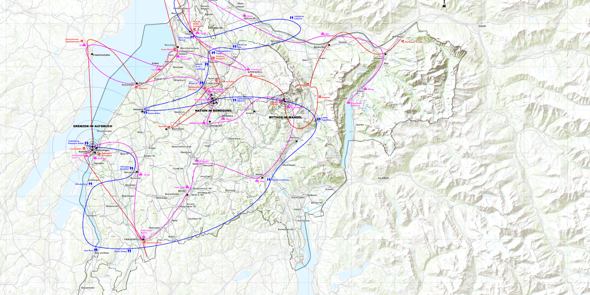 La Suisse Orientale – mit dem Wettbewerbsbeitrag für die Landesausstellung EXPO 2027 präsentiert OOS eine neue Sicht auf die Ostschweiz. Dabei werden die drei Hauptstandorte Sittertobel, Bodensee und Schwägalp inhaltlich und geographisch in Szene gesetzt.