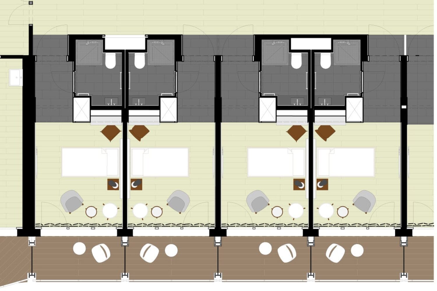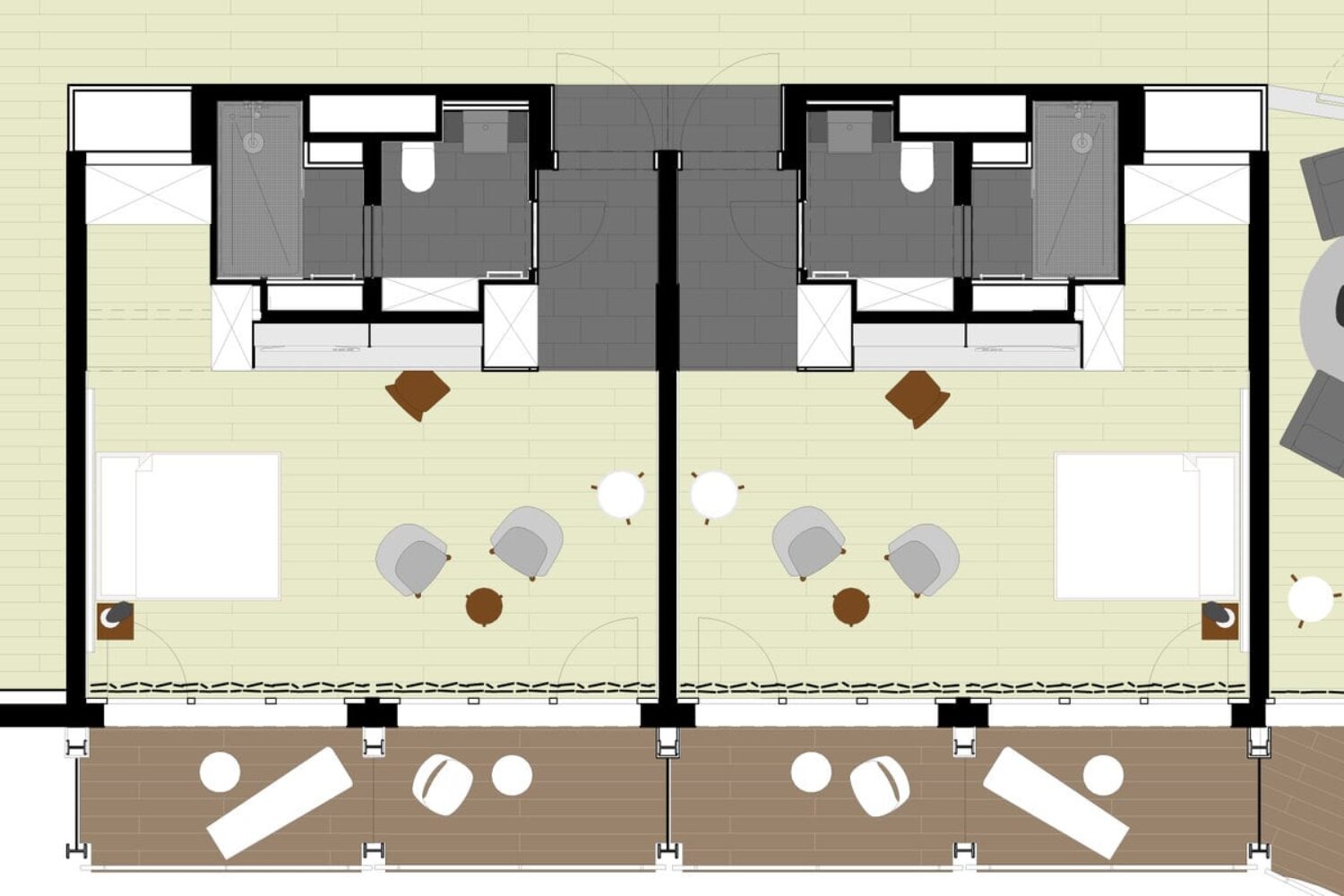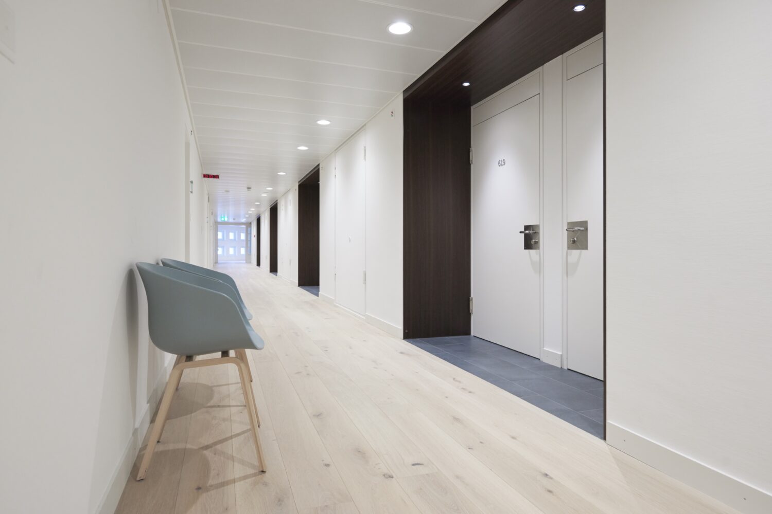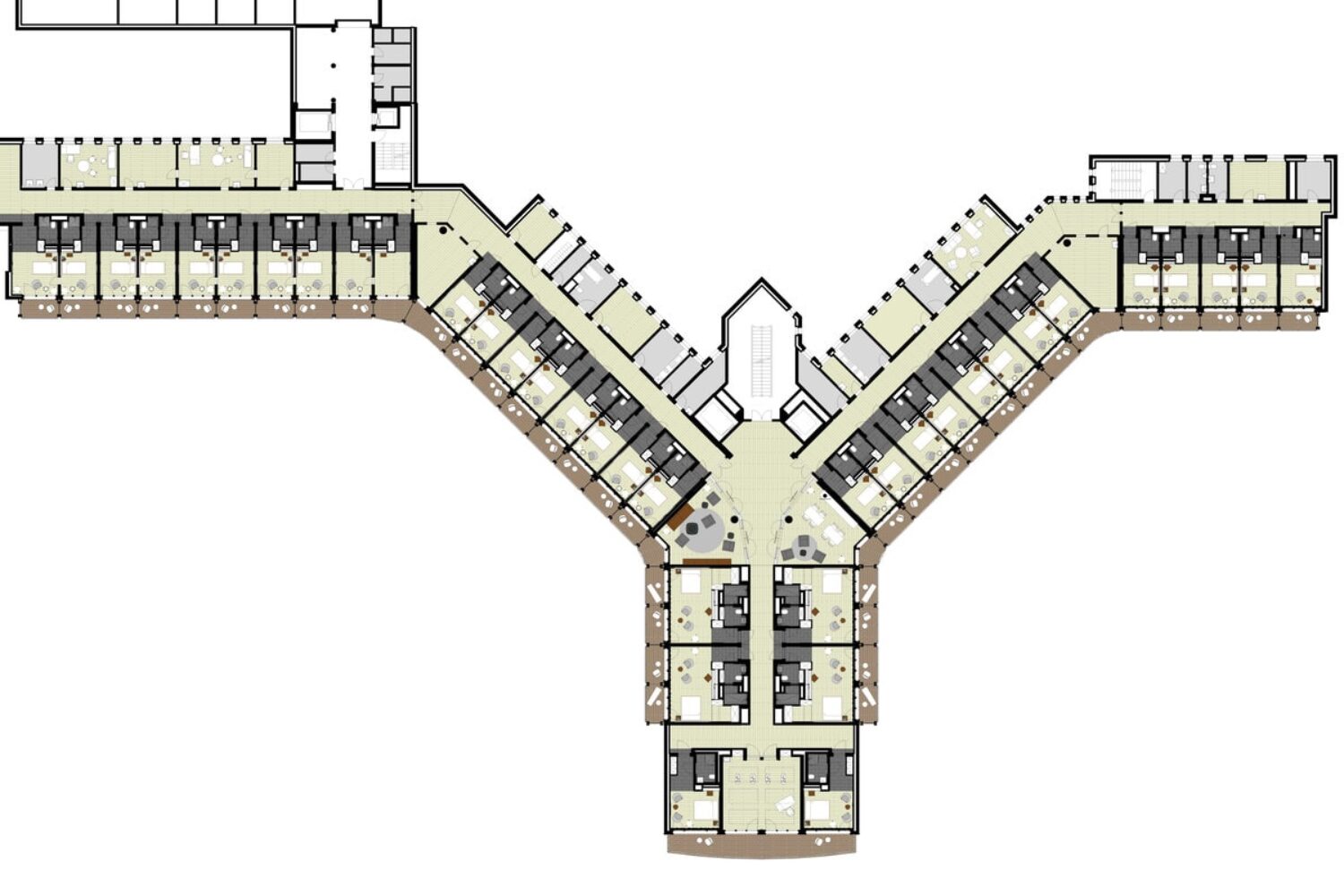 Die neuen, grosszügigeren Zimmertypen der Aufstockung fügen sich in das Konzept der «First-Class Reha-Hospitality» ein, während die unteren Geschosse in einem tieferen Standard ausgebaut wurden. Privat-, Halbprivat- und Allgemeinzimmer decken so die Bedürfnisse und Ansprüche der Zielgruppen der alpinen Klinik ab.
