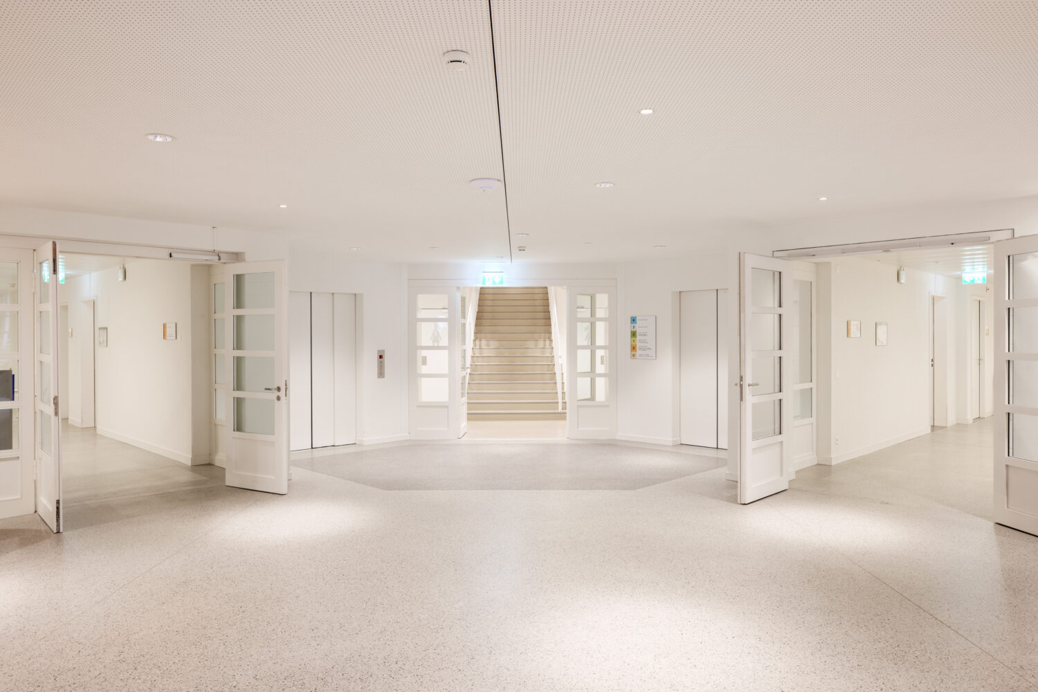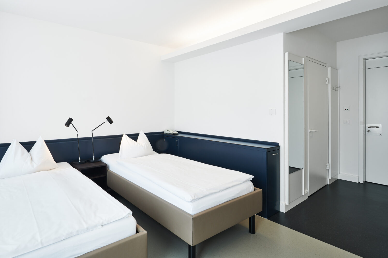 Das Hauptgebäude mit dem Bettentrakt wurde unter laufendem Betrieb geschossweise Innenraumsanierungen unterzogen. Mit einer Aufstockung um zusätzliche 17 Zimmern und einer Erdbebenertüchtigung ist das Bestandsgebäude für die nächsten Generationen fit gemacht worden.