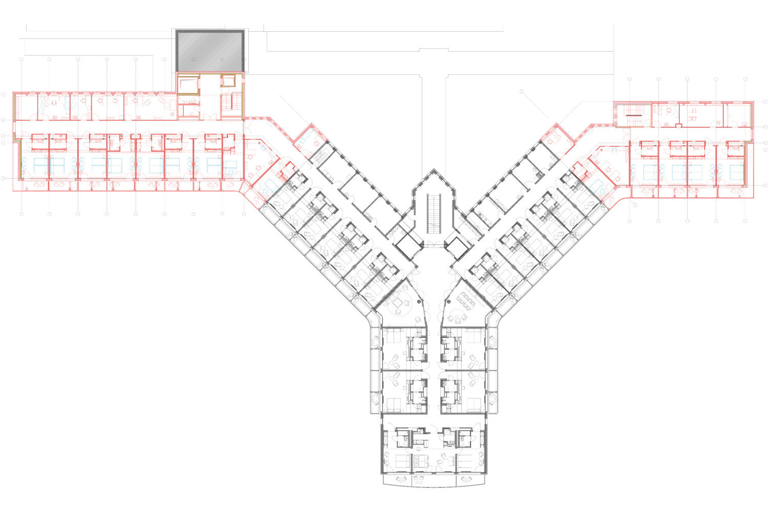 Durch die Sanierung und Aufstockung des bestehenden Hauptgebäudes der Hochgebirgsklinik Davos wurde das Reha-Erlebnis gestärkt und die Aufenthalts- und Nutzungsqualität verbessert. Dadurch wird die Neupositionierung der Klinik mit Fokus auf Hospitality unterstützt. Die alpine Klinik ist gleichzeitig ein wichtiger Teil des ambitionierten Masterplans für den ganzen Medizincampus Davos.