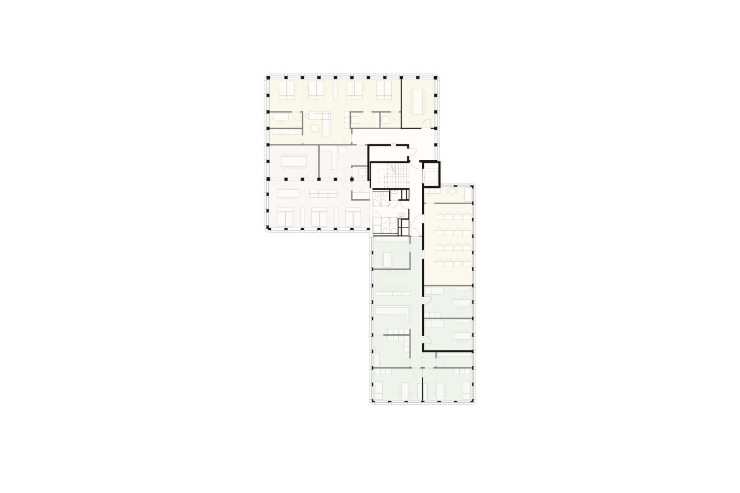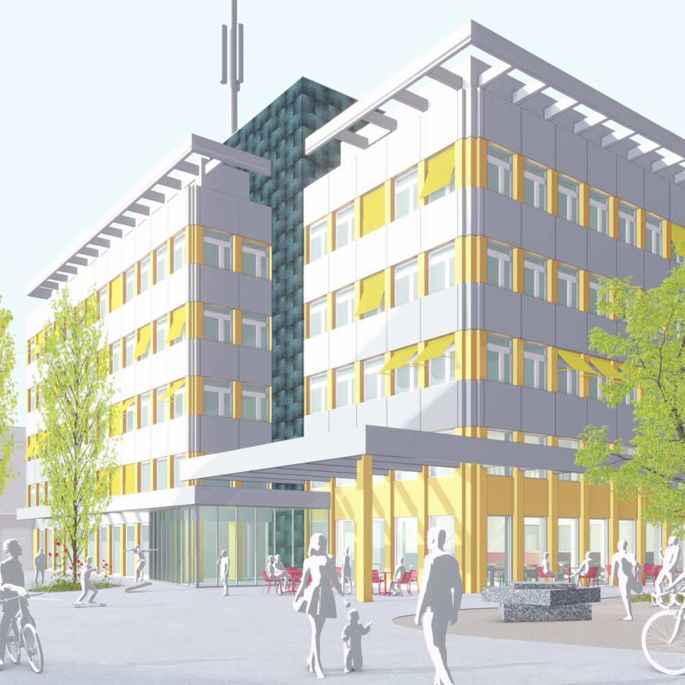 Der Auftrag verlangte die Entwicklung eines Projektvorschlags, der den Bestand des SBB Dienstgebäudes aus den 60er Jahren, dessen Erweiterung aus den 80er Jahren sowie die Stadtachse aufwertet. Der Baustein soll zu einer städtebaulich bedeutenden Achse der Langstrasse entwickelt werden. Das neue Nutzungskonzept setzt auf Retail und Gastronomie im Erdgeschoss sowie Büro-, Bildungs- und Gesundheitsnutzung in den Obergeschossen. Mit einem hofseitigen Anbau wurde die Ausnutzungsreserve ausgeschöpft und zusätzliche Mietfläche geschaffen.