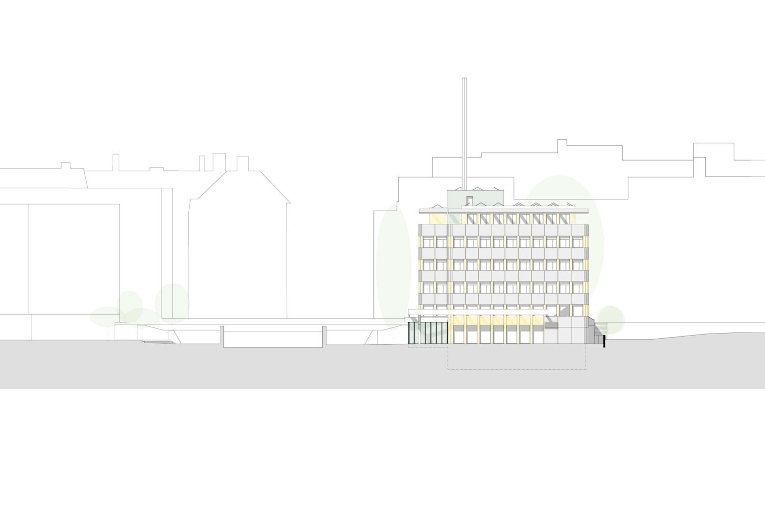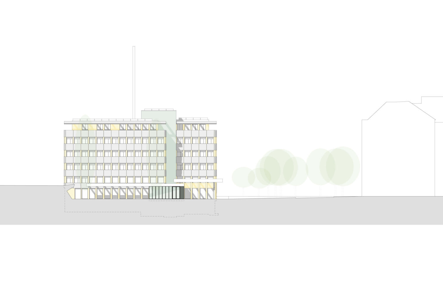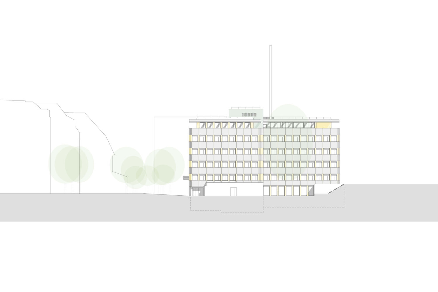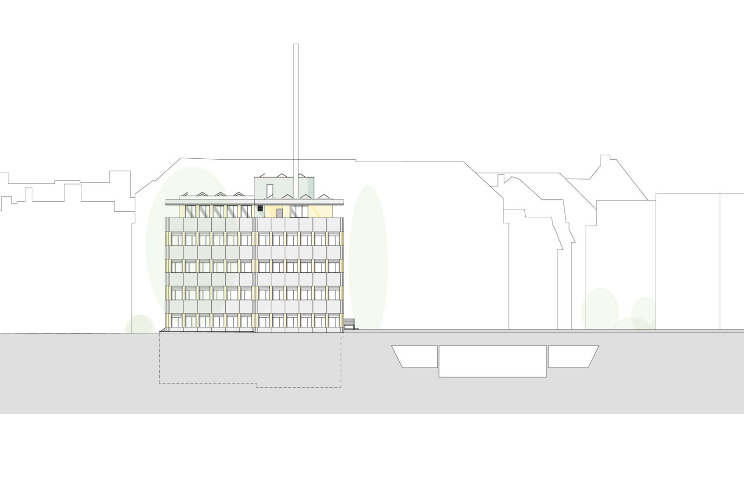 Das ehemalige SBB Dienstgebäude an der Langstrasse 175 in Zürich steht vor einer Umnutzung. Es soll unter Berücksichtigung nachhaltiger Bauprinzipien saniert und durch einen Anbau erweitert werden. Trotz eines minimal-invasiven Konzepts mit konsequenter Wiederverwendung der bestehenden Bauteile konnte sich das Projekt im Wettbewerb nicht durchsetzen.