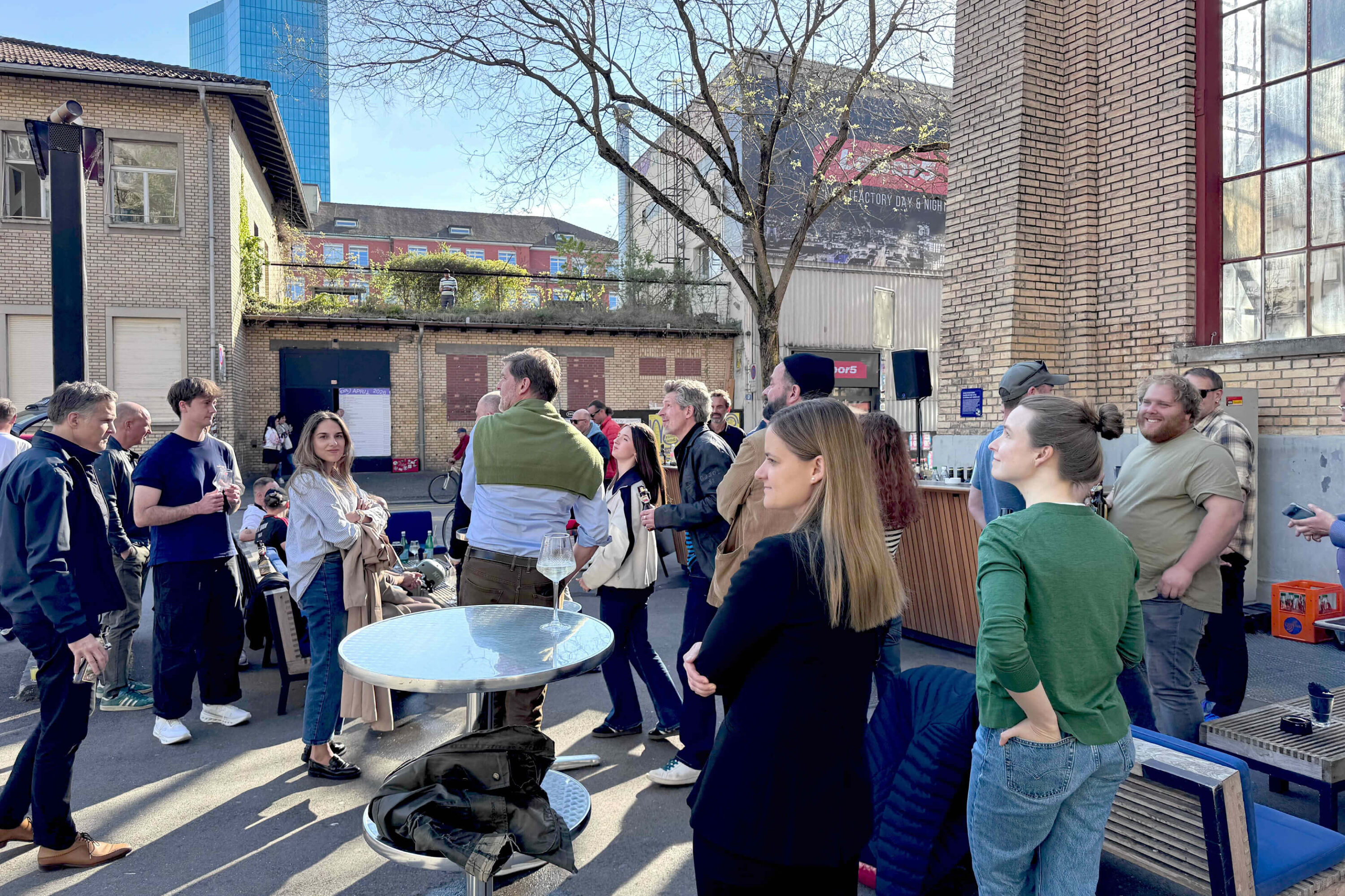 Mit einem Apéro haben wir die Eröffnung gefeiert. Nun geniessen wir den Ausblick aus unserem Büro in die grüne Landschaft.