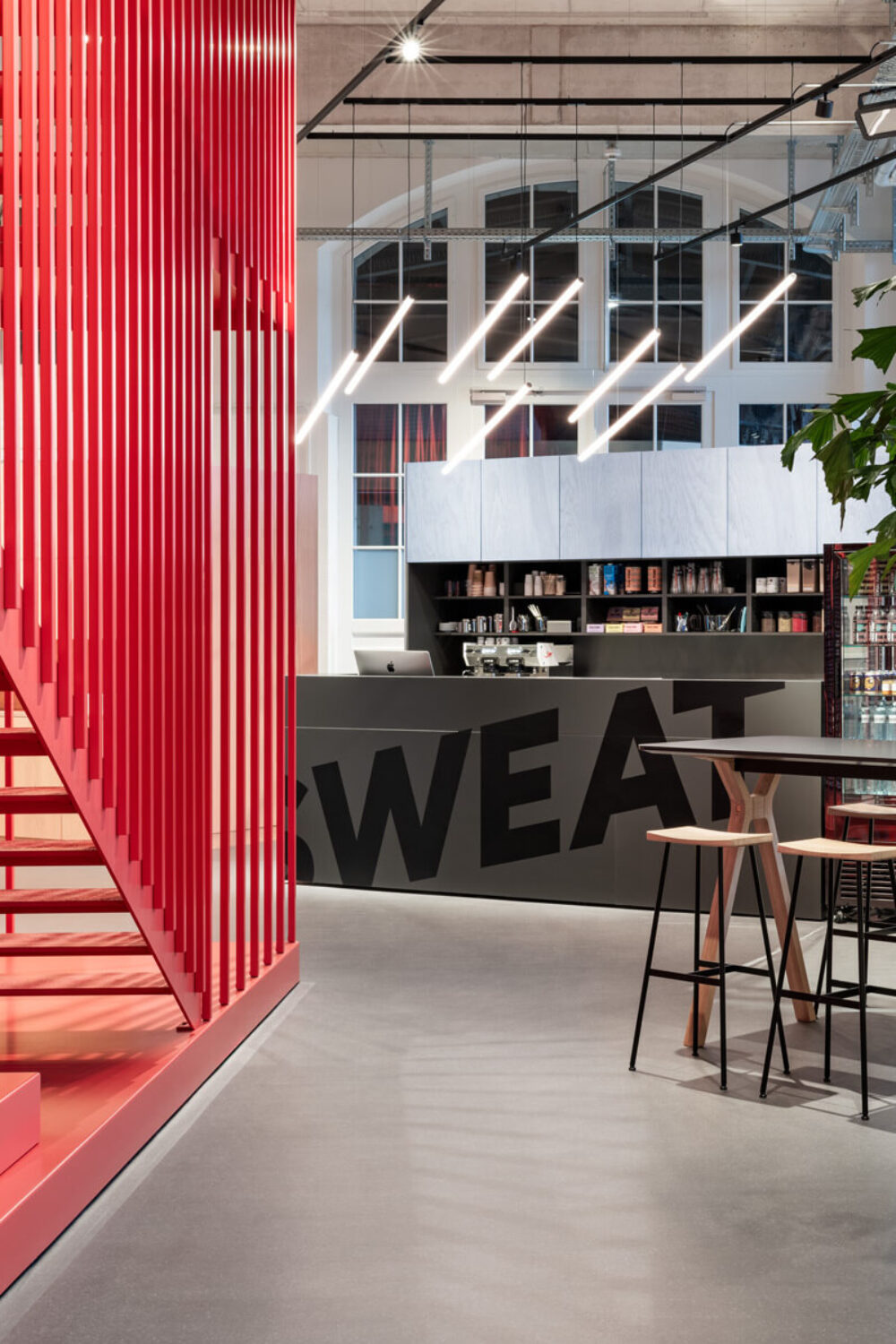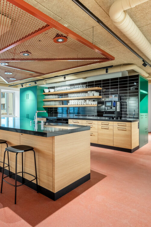 On the upper floor, lush greenery now provides a surprising welcome and a pleasant atmosphere in the otherwise multifunctional space. The area is characterised by a kitchen for drinking coffee, cooking and eating together, open meeting zones and individual workstations. The smaller offices offer ideal retreats for concentrated work.