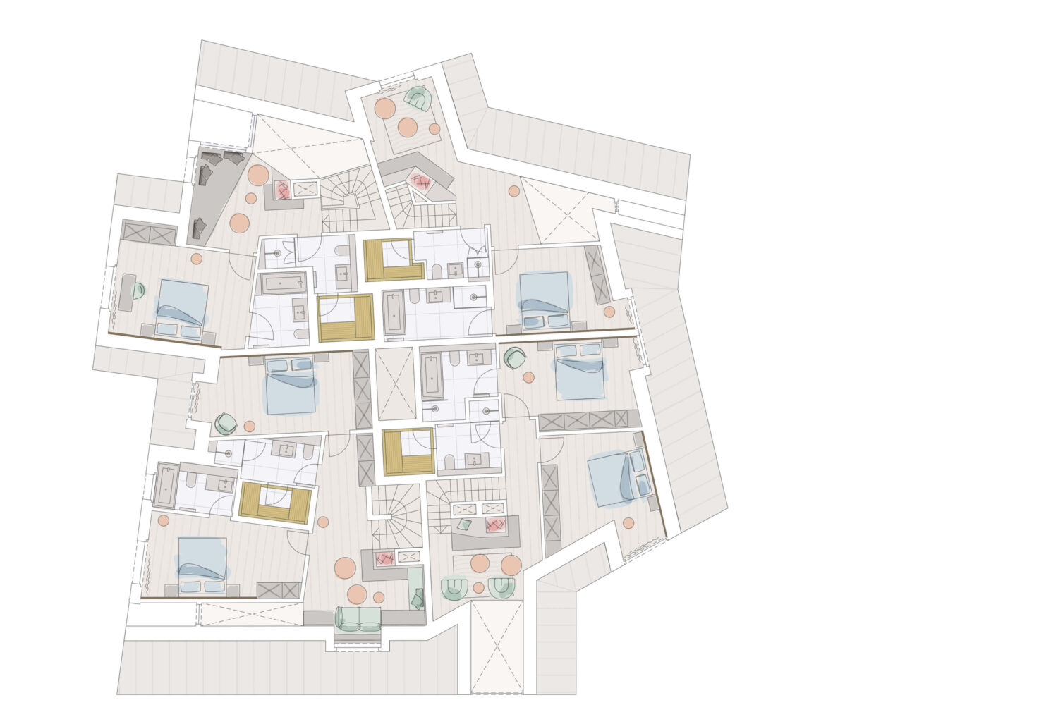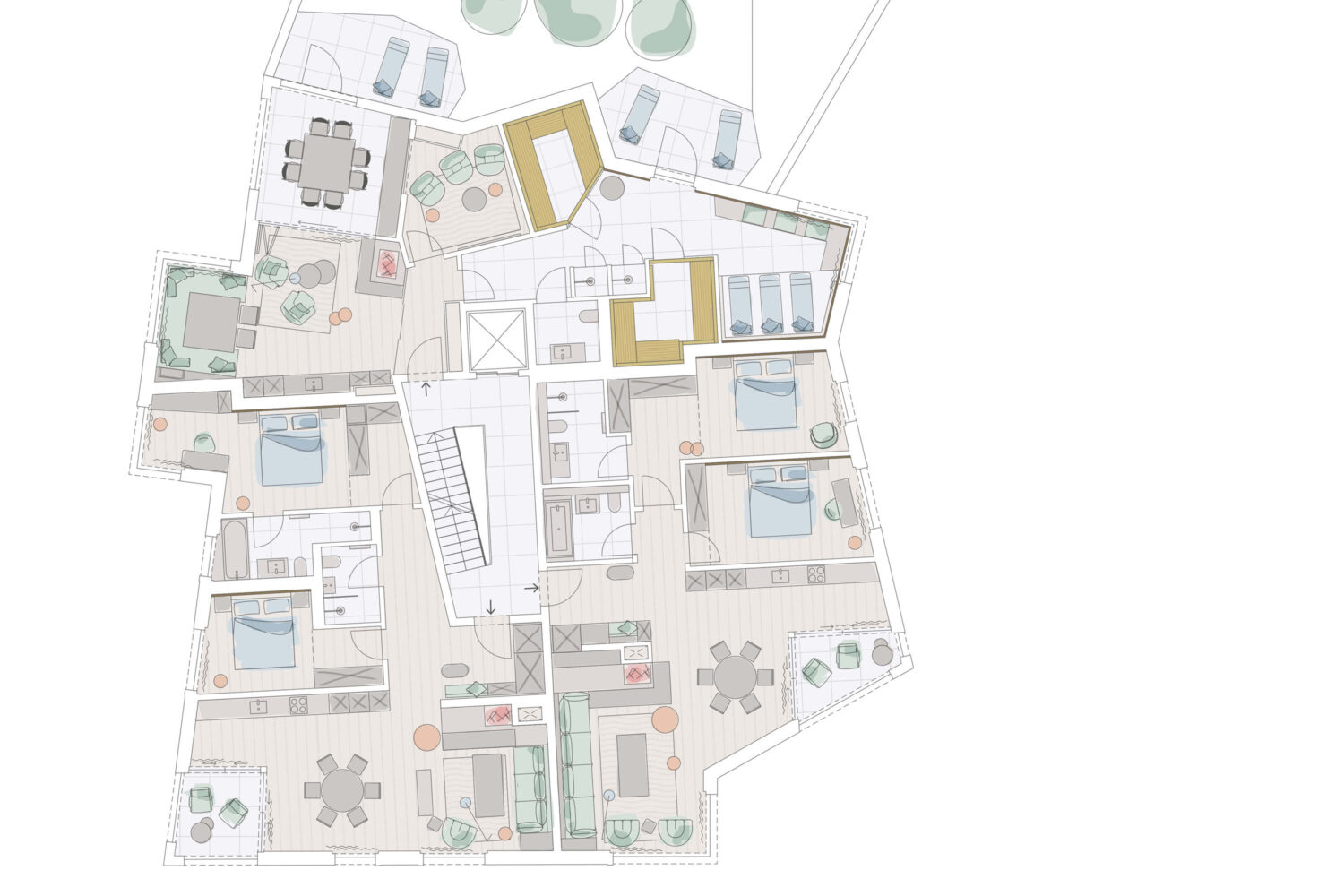 Val Val is already the third apartment building from the pen of OOS in Andermatt Reuss. Designed for Andermatt Swiss Alps AG, the new building impresses with its uniqueness and individual character. The result is exceptional and high quality apartments that are specially tailored to the needs of families.