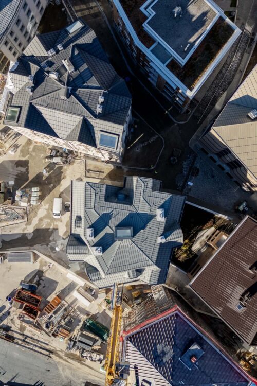 Communal areas such as a lounge, a spa, two saunas, a cinema and a roof terrace enrich the spatial concept and encourage interaction among residents. Retail space is also located on the first floor.