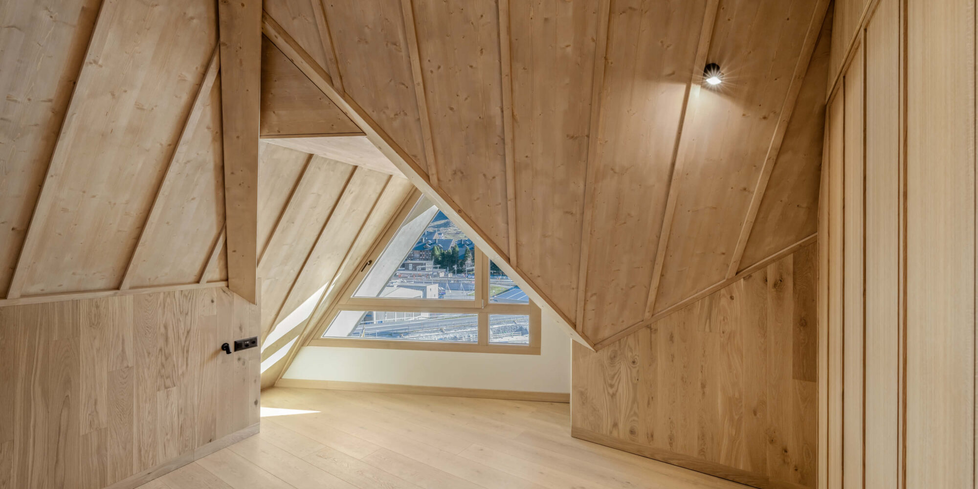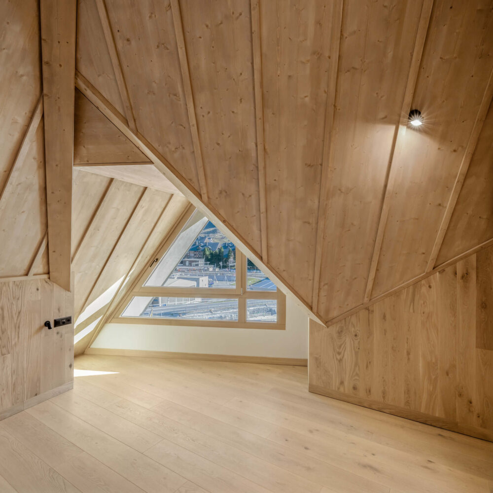 All apartments are generously proportioned. Large windows and loggias, which can be used as winter gardens, offer spectacular views of the mountains. The penthouses extend over two floors with high ceilings and a thoughtful duplex design.