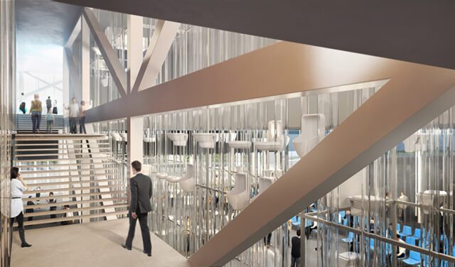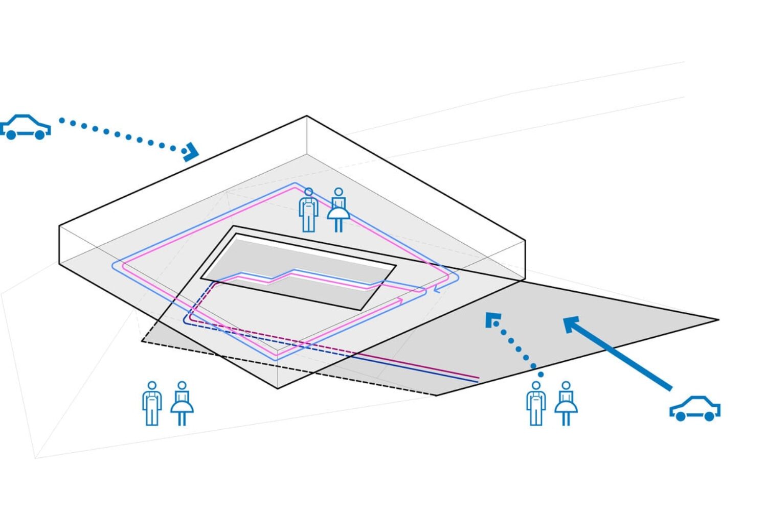 The sanitary manufacturer Geberit is planning a new customer training and information center on the plant site in Pfullendorf (DE). With the aim of combining “technology with emotions”, OOS has developed an architectural concept within the scope of this study contract, which enables the Geberit brand to be experienced in all its facets.
