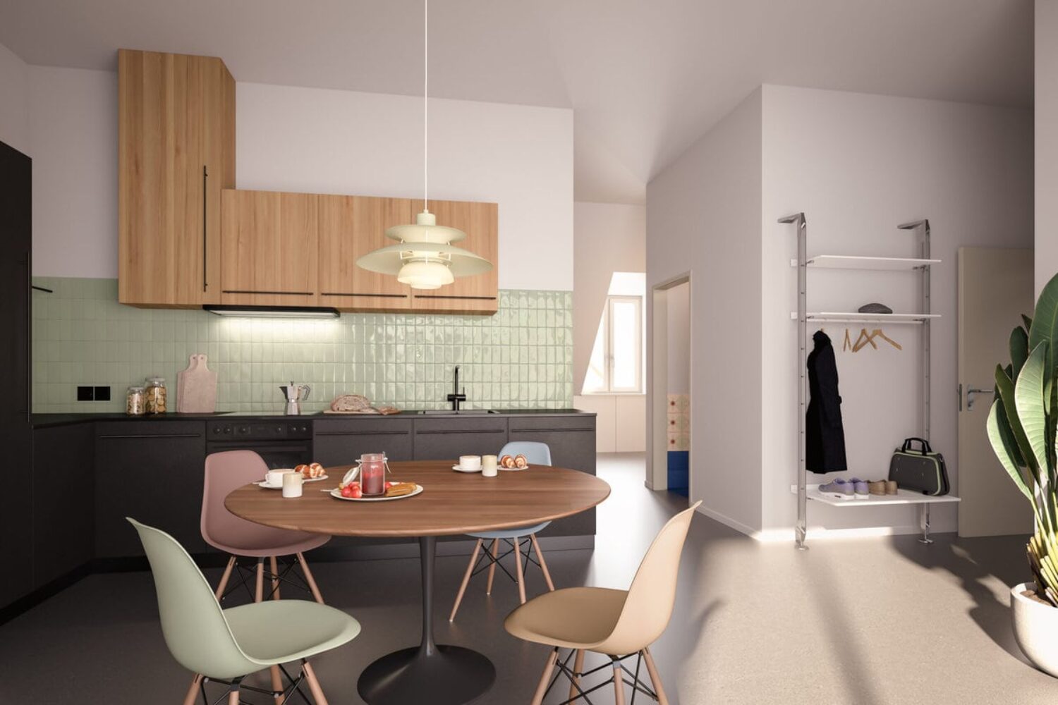 The reuse of the existing substance is part of the refurbishment concept. Much of it is preserved and will be reused after appropriate upgrading. Architectural features are preserved as far as possible, which at the same time contributes to a more sustainable project realization.