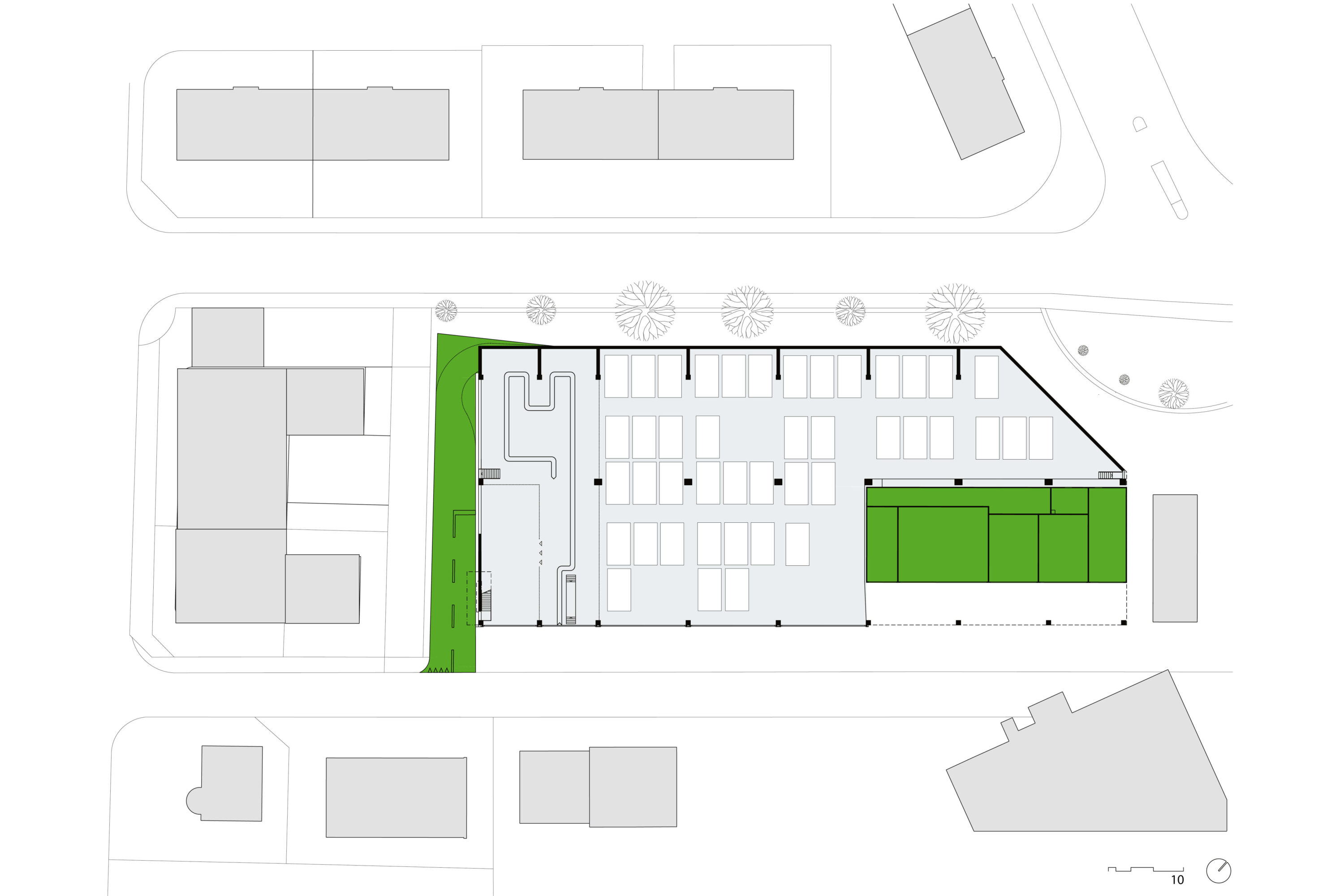 The functions of a waste collection point for the public and a warehouse for internal temporary storage were determined by operational and market considerations. Various additional uses were examined for the urban environment and the economic viability of the mixed use was assessed.