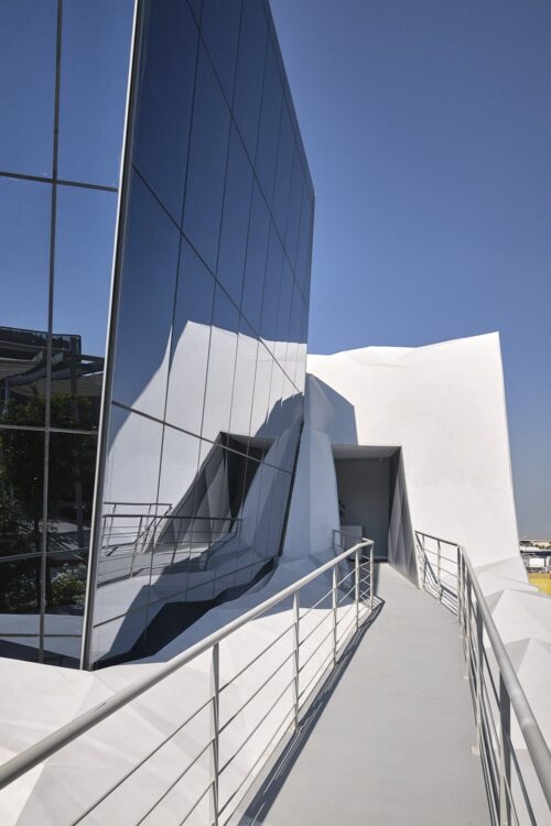 The development of the design for the polygonal crystal shape was based on the leitmotif „Strong, small and beautiful“. With this iconographic appearance, the pavilion invites the world to explore the country. With strong symbolic power, the Monaco Pavilion asserts itself in the international environment of Expo 2020. The crystal with diamond-shaped facets on a rocky background embodies the versatility and strengths of Monaco – its internal cohesion as a nation as well as its strong partnerships and connections with the world – key elements of Monegasque policy and a fitting expression of the Expo Motto “connecting minds, creating the future”.