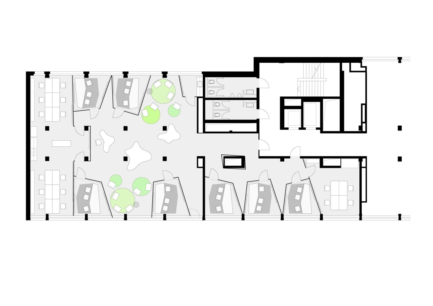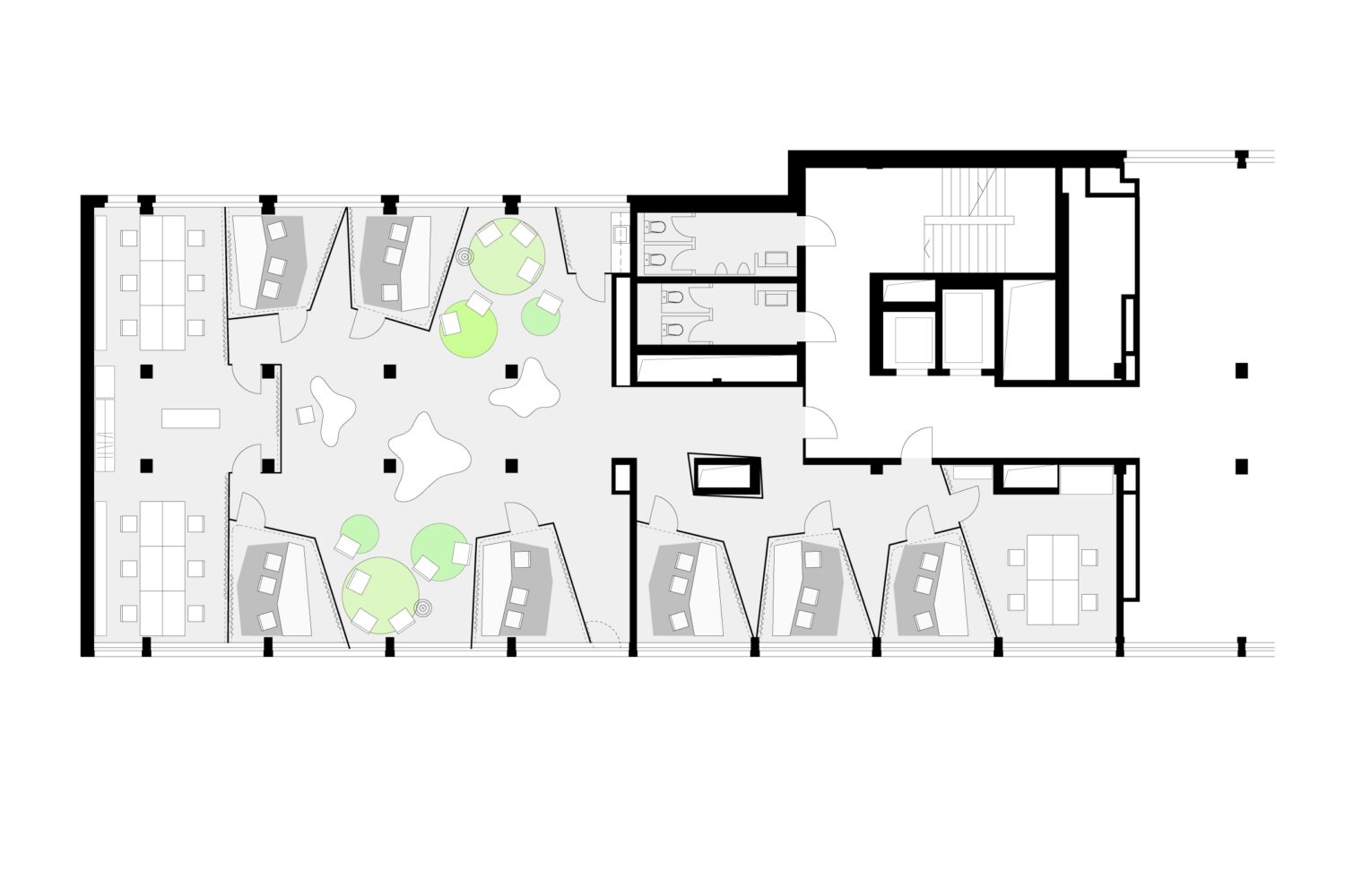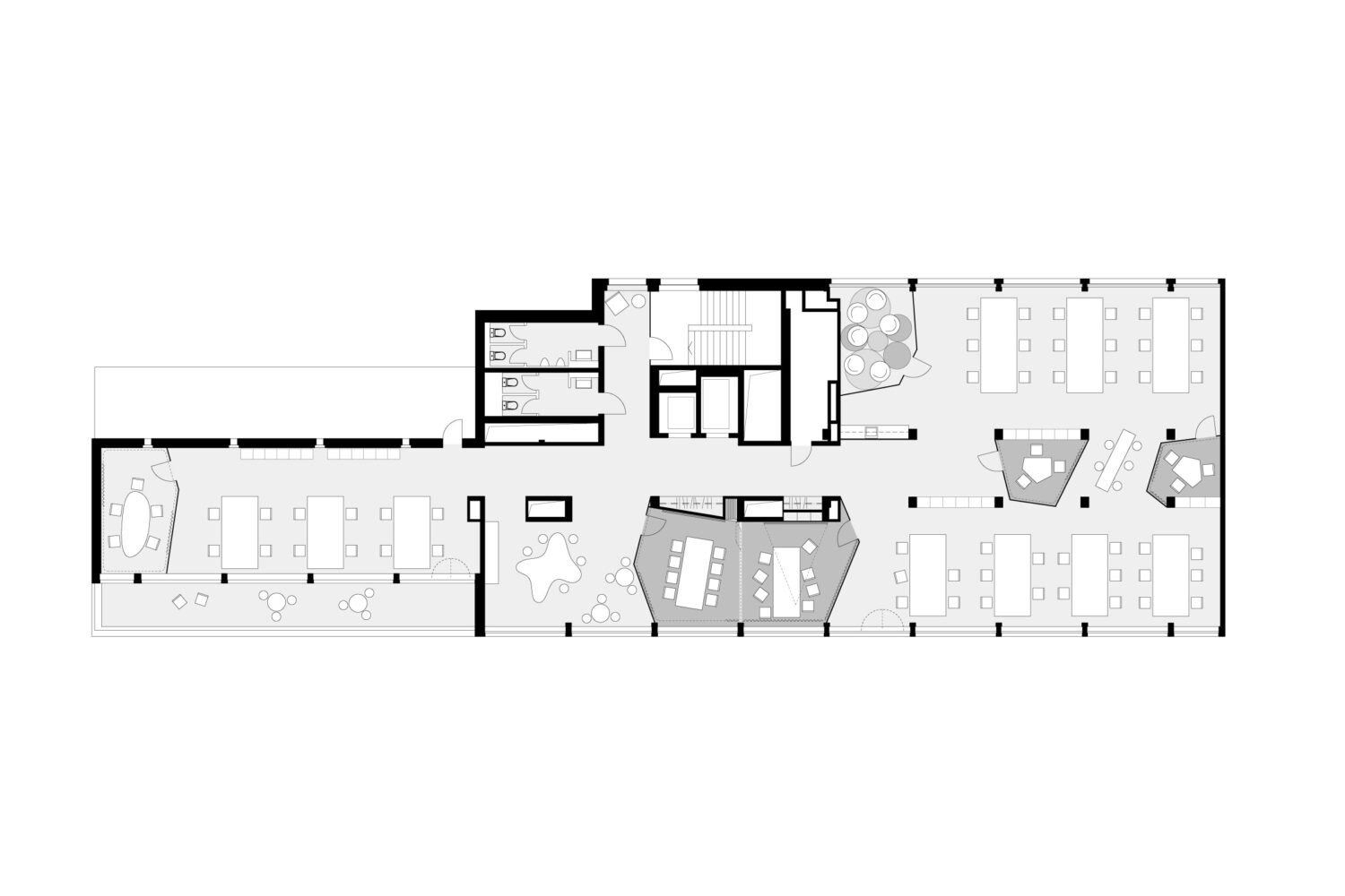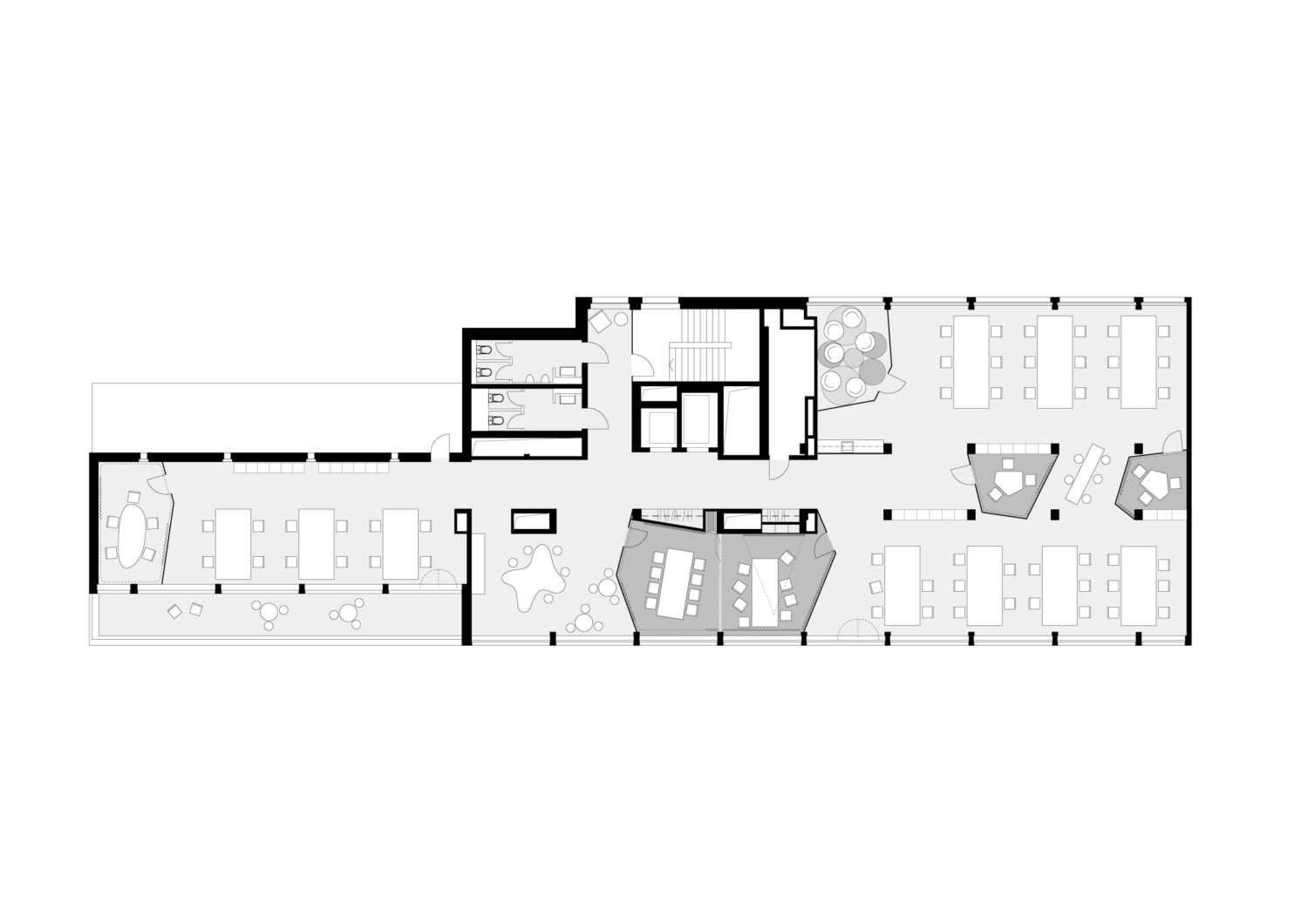The workplaces were designed to be very flexible and compressible with the use of benches. OOS has thus made the appearance of the headquarters “experienceable” and “perceptible” according to the design concept. Thanks to early and consistent coordination with the client, the short planning and construction time and the high coordination effort with the basic construction could also be successfully mastered.