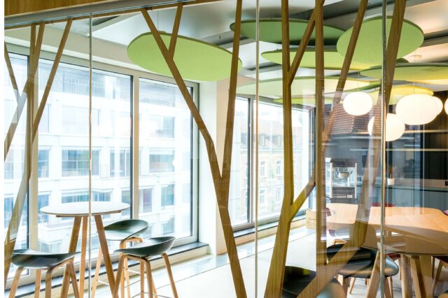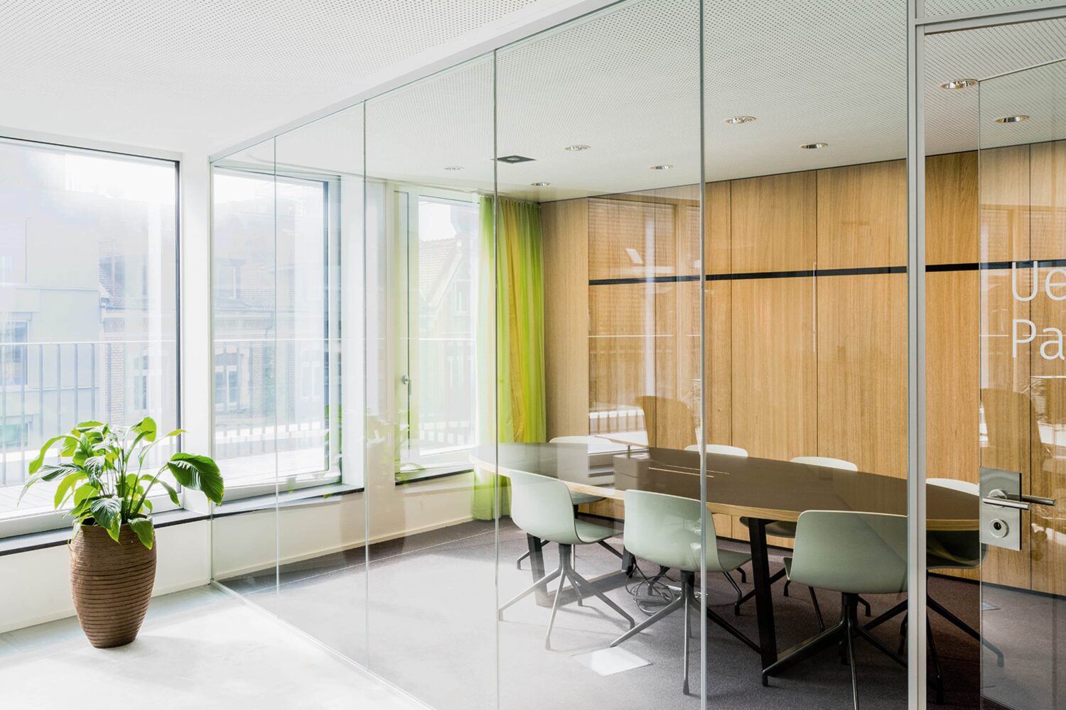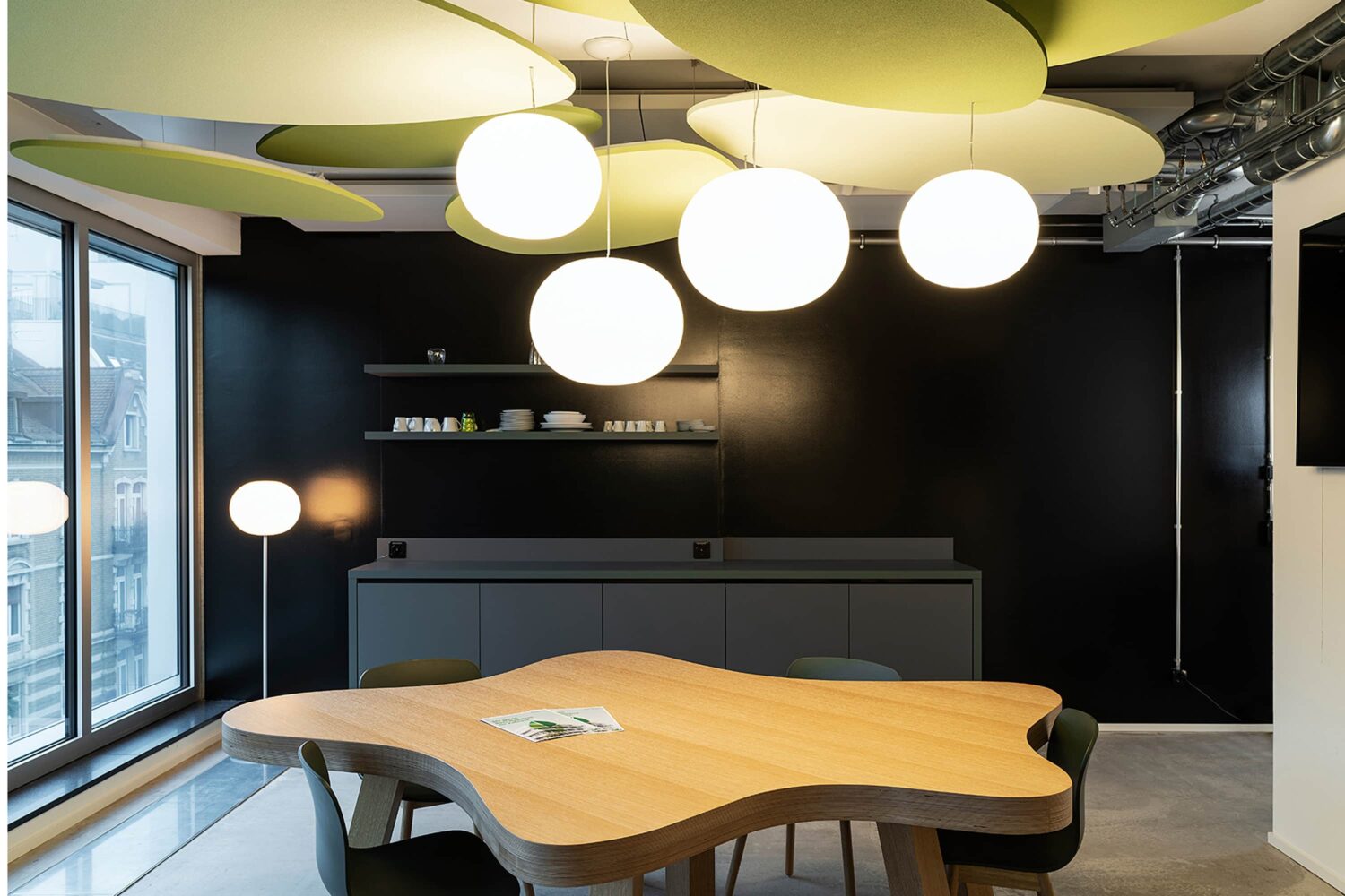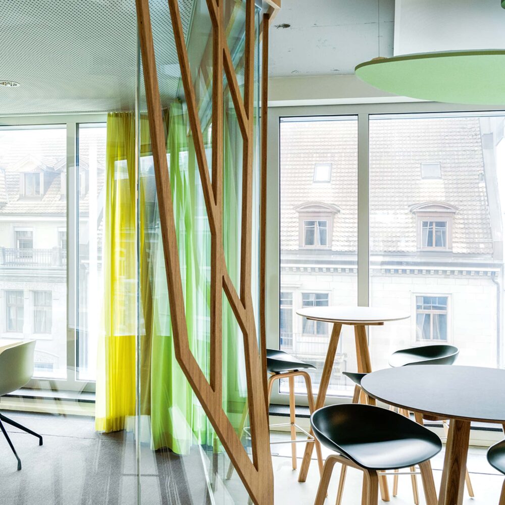 In just four months from the start of the project, the entire area was shaped and defined organisationally and atmospherically with just a few elements: A central area with meeting rooms and a café corner for meetings and stays was created in the headquarters.