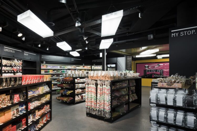 The brand was developed on three levels and in three steps: In a first step, the brand values were defined in a target group-specific needs analysis: individual, intelligent, tailor-made. Then the brand name was developed: The name “My Stop” reflects the service-oriented approach of the service station. This is underlined with the brand-specific font. In the third step, the concept for the exterior, façade, interior (access/retail/catering) and signage was developed and the brand values were spatially transferred. The service area is a place to stay and a meeting point with individual offers geared to different needs.