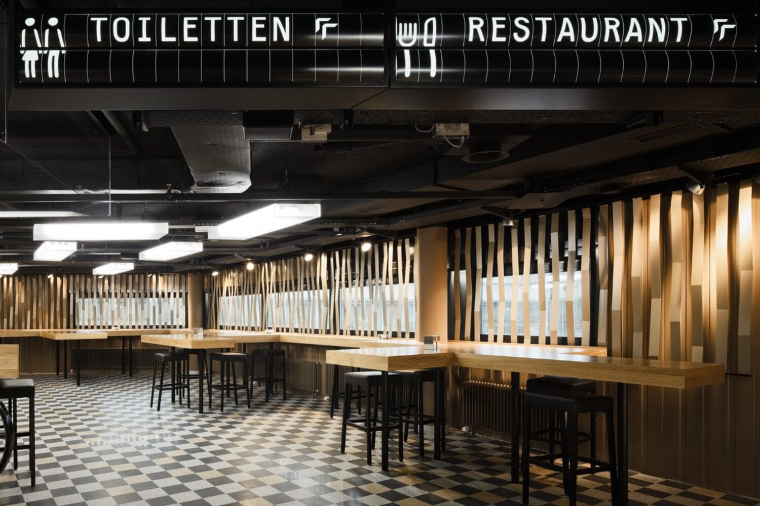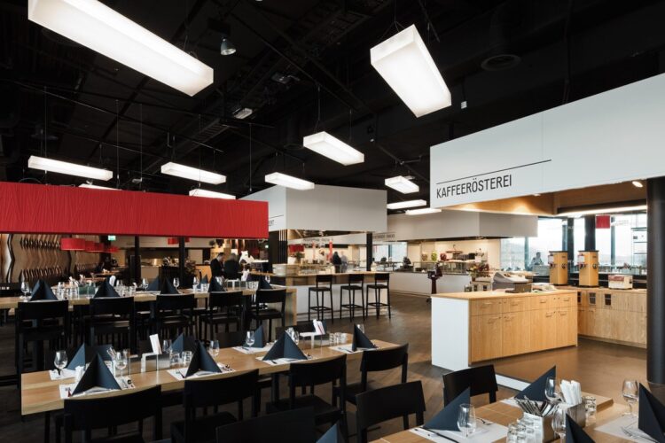 The implementation focuses on the interior fittings such as entrance areas, My Stop shop, takeaways, My Stop zone, restaurant with back office and storage areas as well as the visitor guidance in the interior. In order to be able to fulfil the goals of an overarching planning of atmosphere and brand presence, these considerations were gradually merged with the design of the corporate identity.