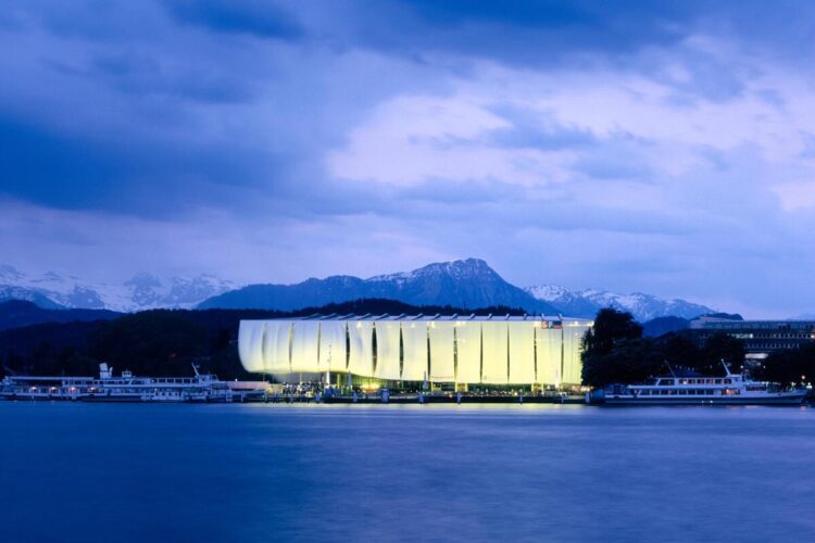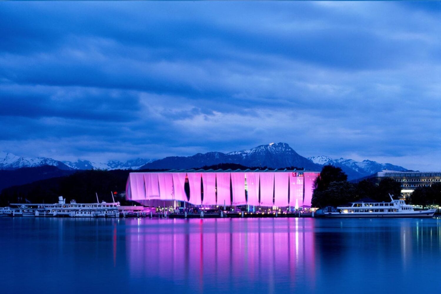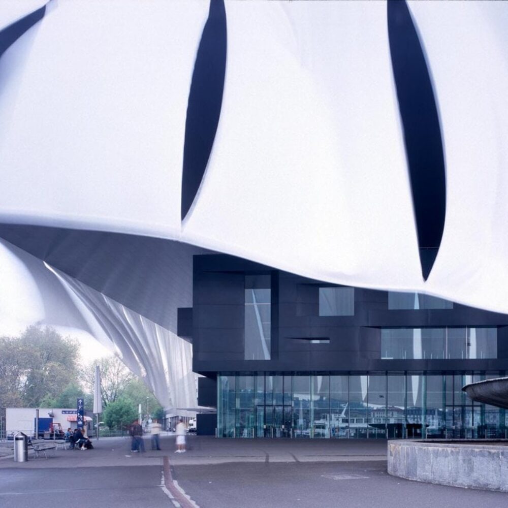 Under the KKL, the sound space s-cape also lies in the immediate physical centre of the festivities. s-cape uses sophisticated technology to diffuse the sounds from the inside of the KKL into the outside space. The tones, notes and sounds escape from their architecturally impressive projecting canopy of the corset and merge in a modified form as a sensual surprise with Lucerne’s urban space.