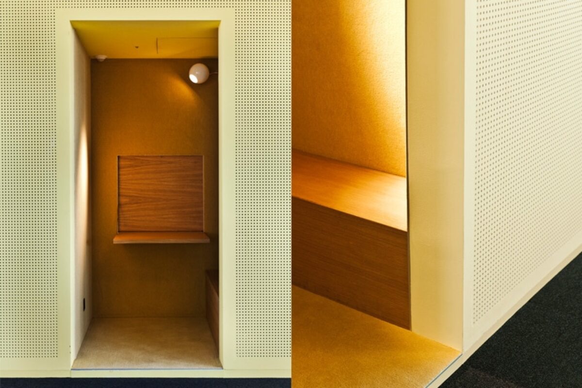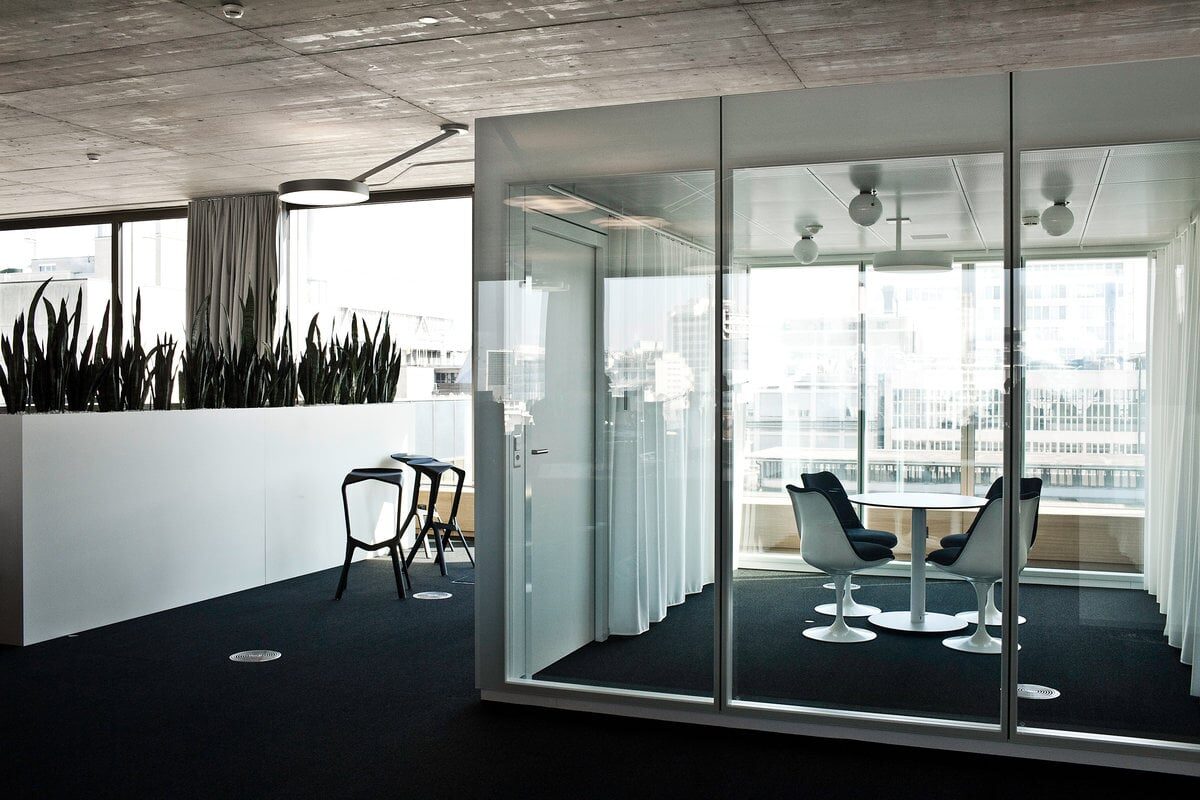 The central area is furnished as a multi space and structured with smaller meeting rooms, informal meeting zones and telephone alcoves. The large meeting rooms are located on the short facades.