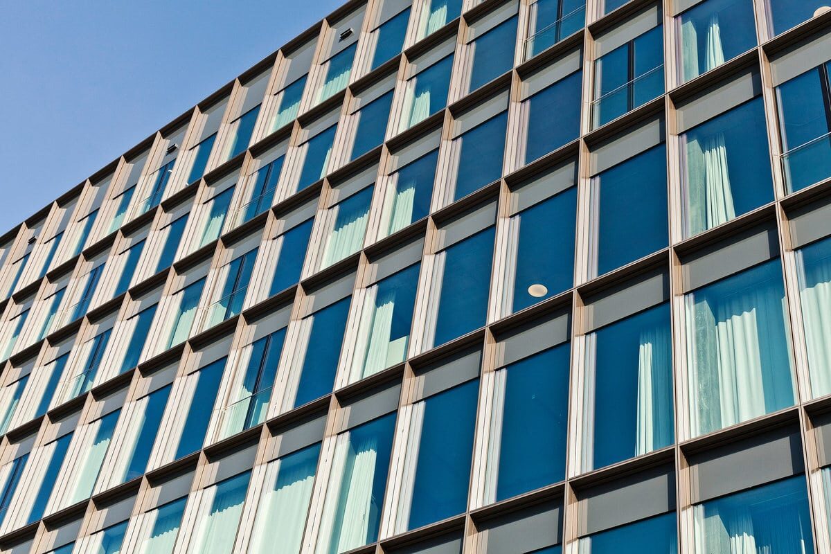 The structuring of the facade using a filigree grid pattern gives the seven-story building its specific character and simultaneously integrates it into the urban ensemble of its environment. The anodised aluminium frames consolidate the artistic and technical aspects into one element. The appearance changes from maximum transparency to a completely closed-off cladding.