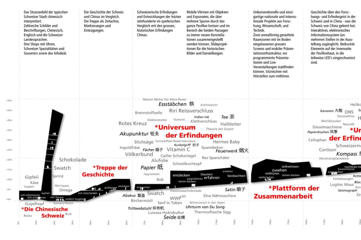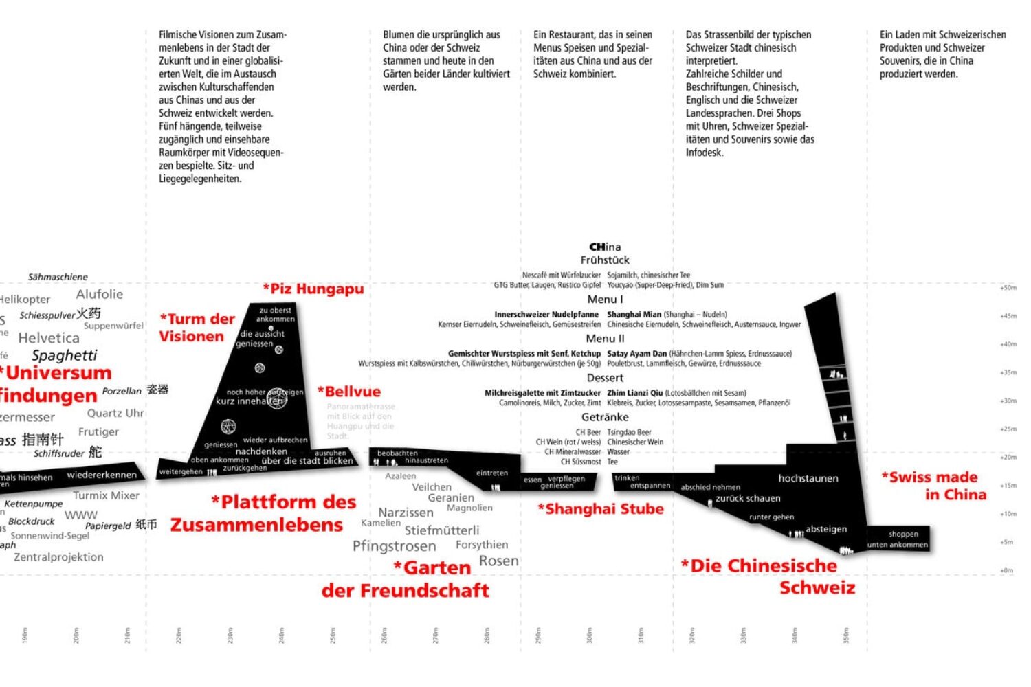 In a playful comparison between China and Switzerland, the predominantly Chinese public is introduced to the largely unknown country as a remarkable place of ideas and inventions in the centre of Europe.