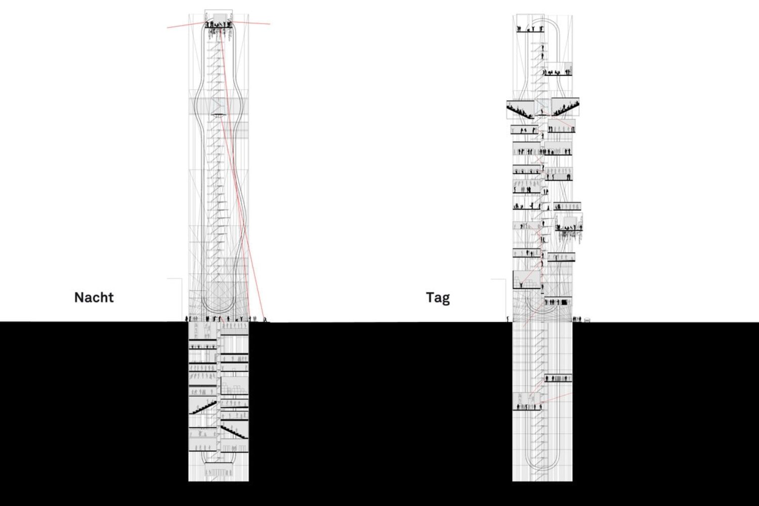 The concept eludes a strictly chronological exhibition dramaturgy, because the sequence of rooms changes at any time by changing to another exhibition box. The performative character of the building intensifies the experience of the museum visitor and attracts the attention of the public. The museum is both stage and tribune, the museum guest actor and spectator.