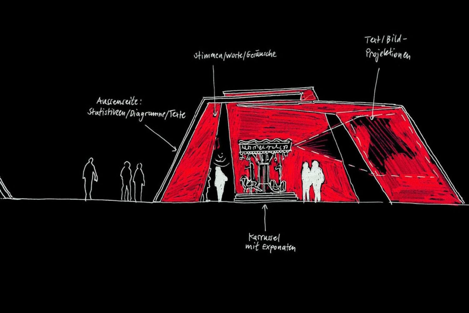 From graphic illustrations to large media projections, different media are aimed at a broad target audience, consisting equally of car freaks, families, small children and senior citizens. The diversity and complexity stimulates the visitors’ imagination, encourages associations and leaves room for interpretation.